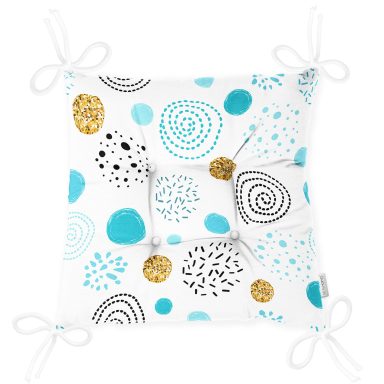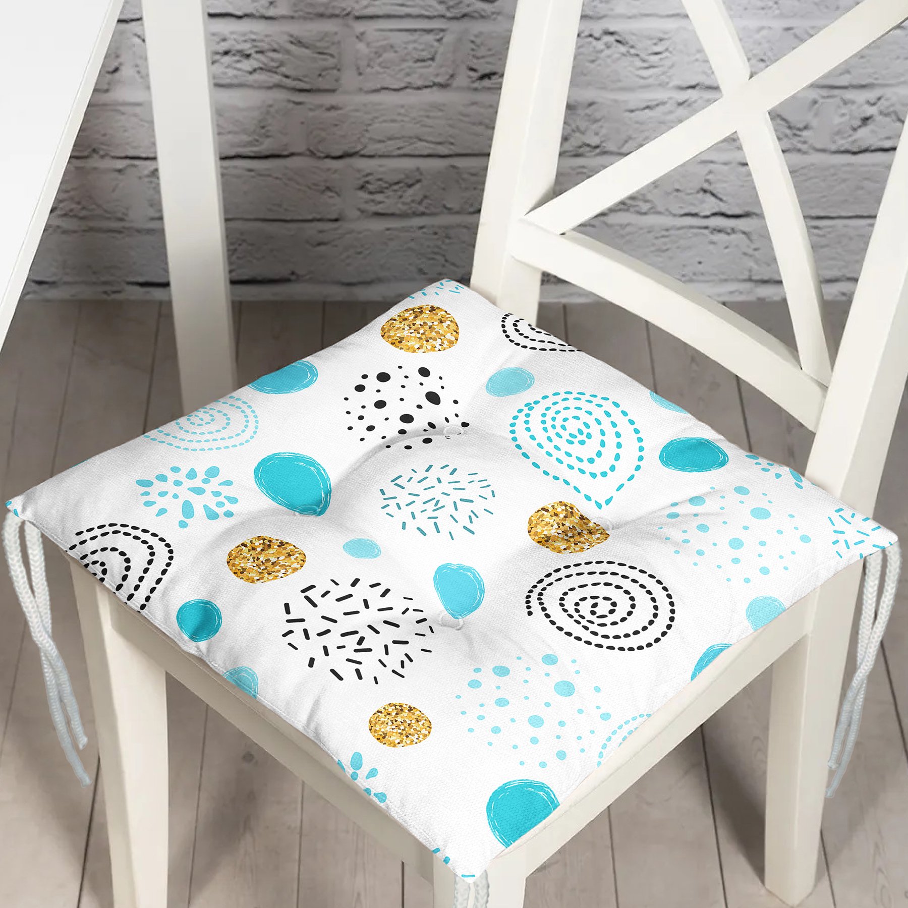 Beyaz Zeminde Mavi Gold Puanlı Dijital Baskılı Modern Pofidik Sandalye Minderi