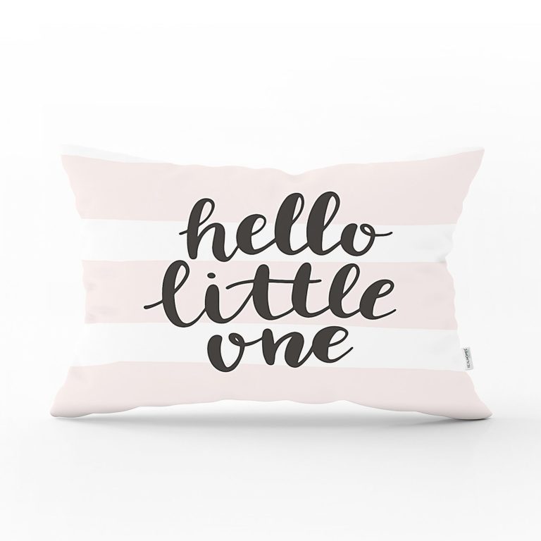 Beyaz Zeminde Pembe Bulut ve Ay Tasarımlı Bebek Odası Dikdörtgen Yastık Kılıfı