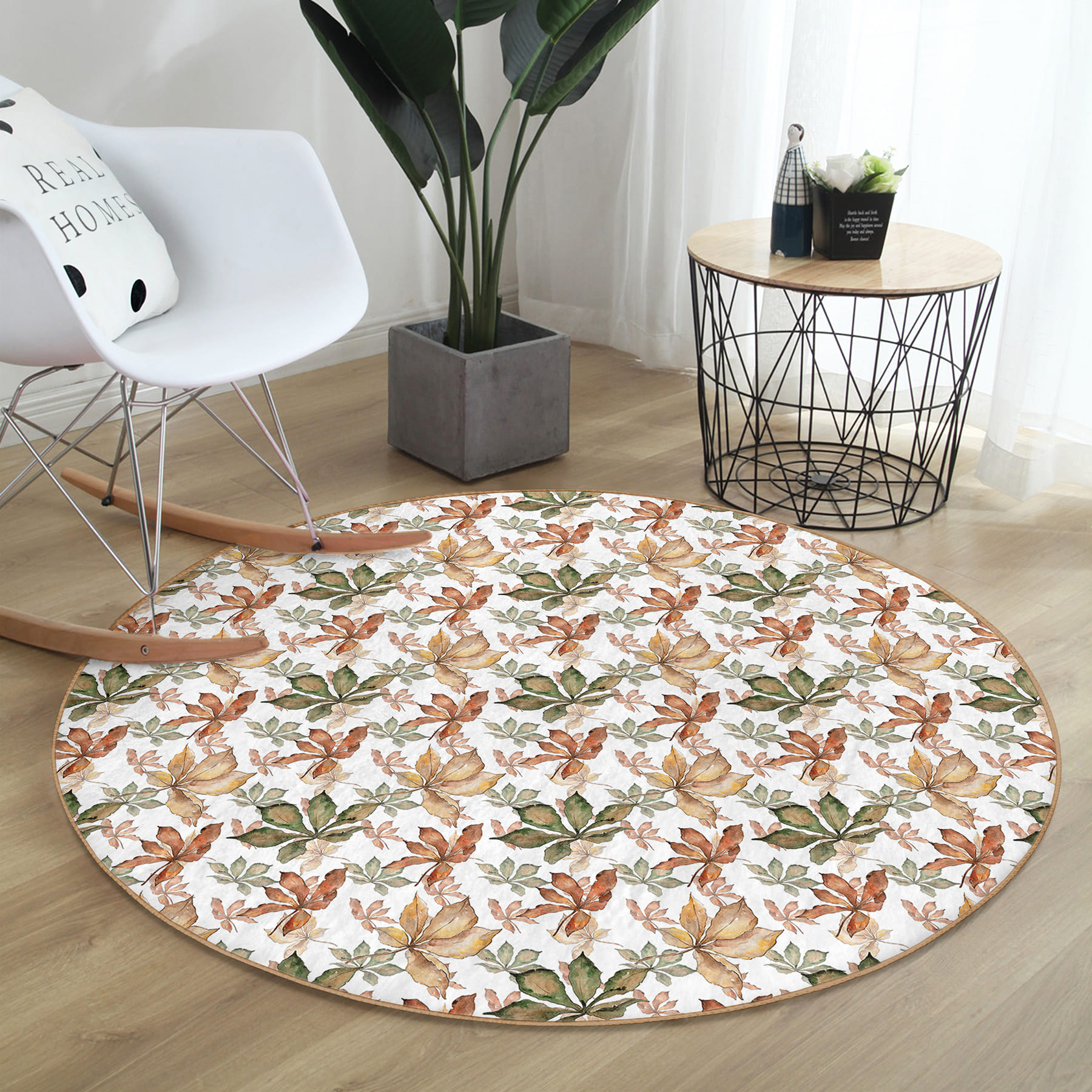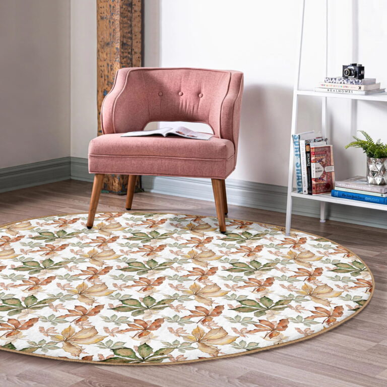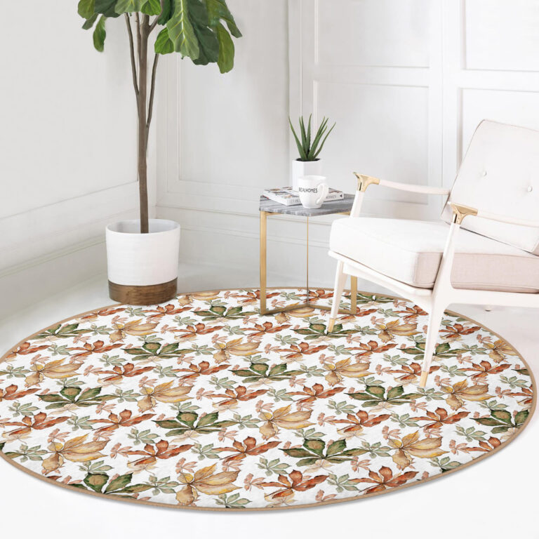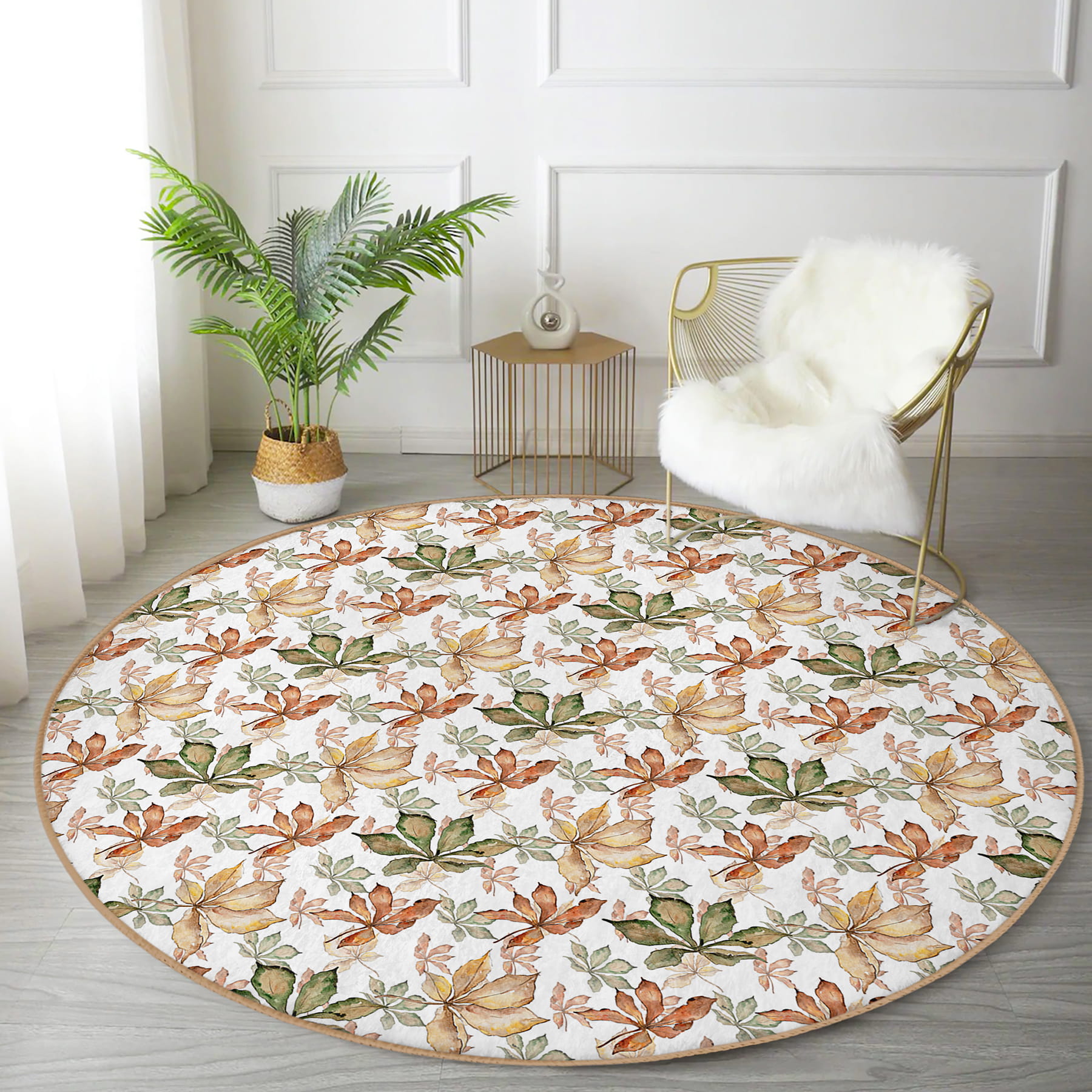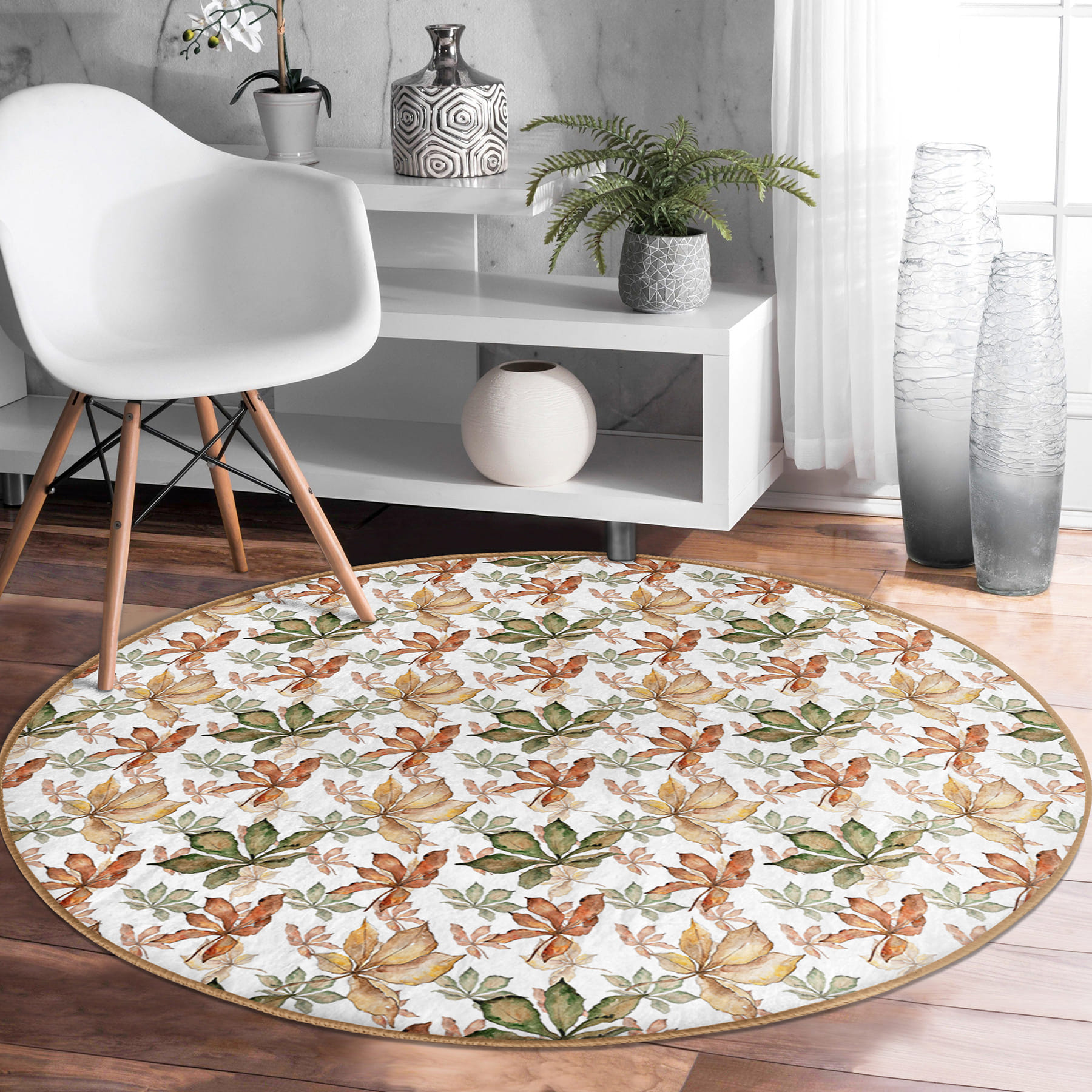 Beyaz Zeminde Sonbahar Yaprak Desenli Renkli Koridor Ve Antre Yıkanabilir Kaymaz Taban Yuvarlak Halı