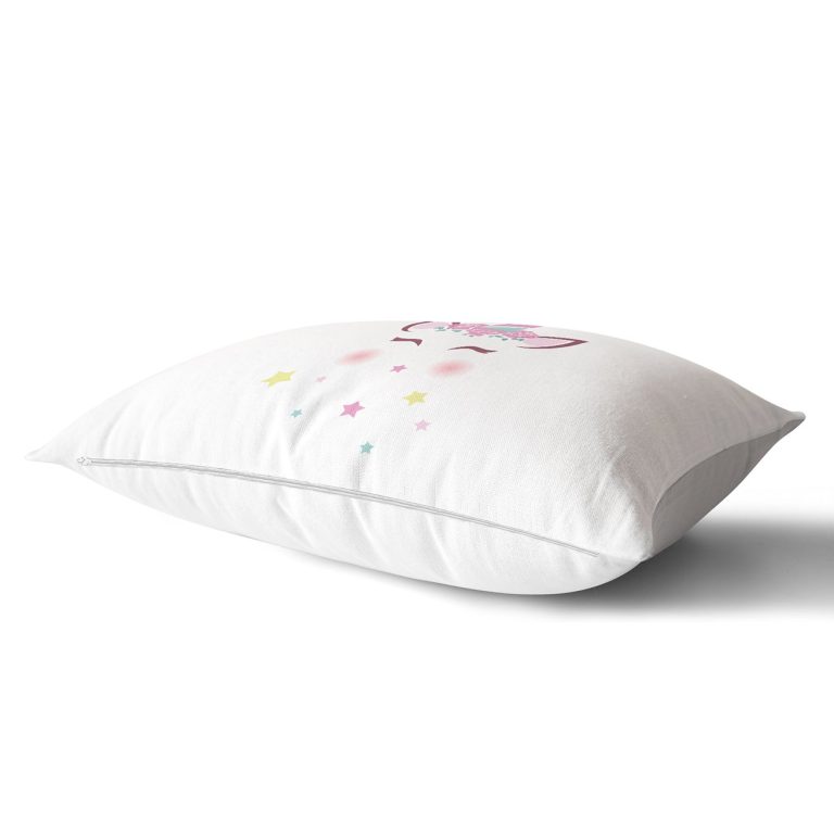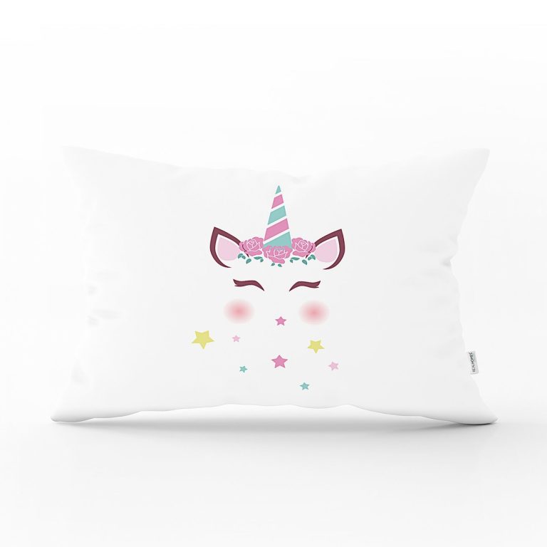 Beyaz Zeminde Unicorm Motifli Çocuk Odası Dikdörtgen Yastık Kılıfı