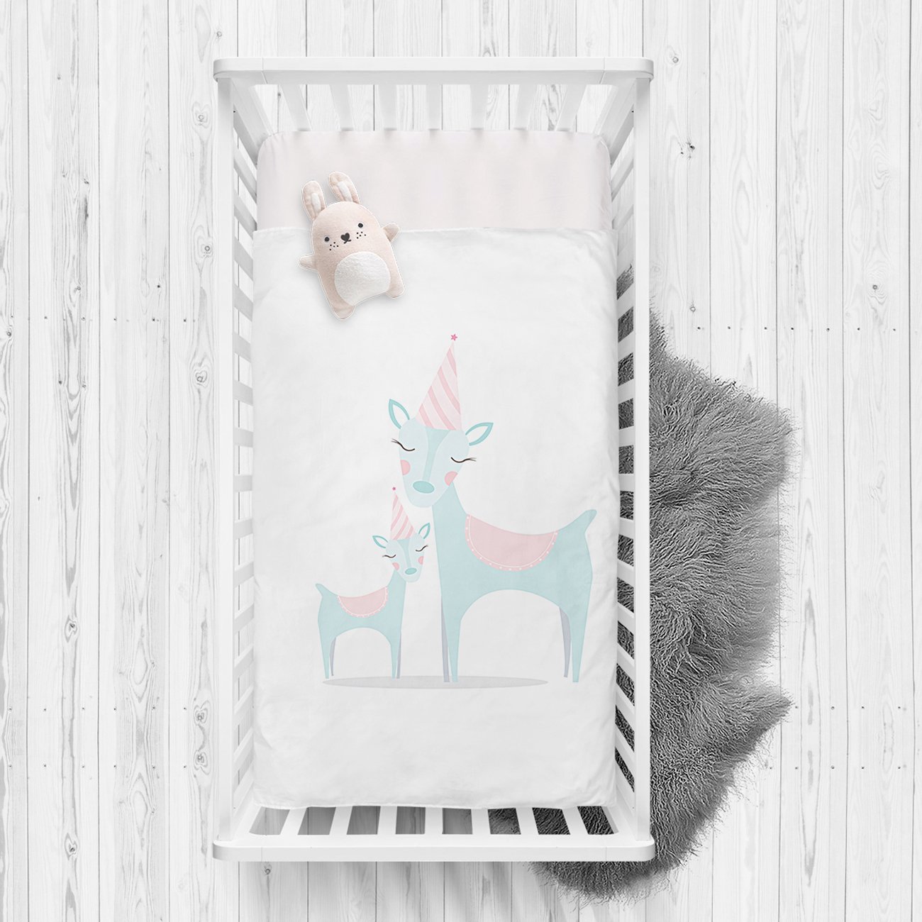 Beyaz Zeminde Unicorn Geyikler Tasarımlı Çocuk Odası Yatak Örtüsü