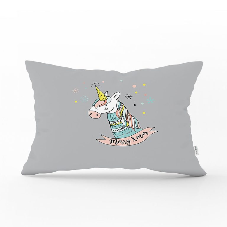 Beyaz Zeminde Unicorn Motifli Bebek Odası Dikdörtgen Yastık Kılıfı