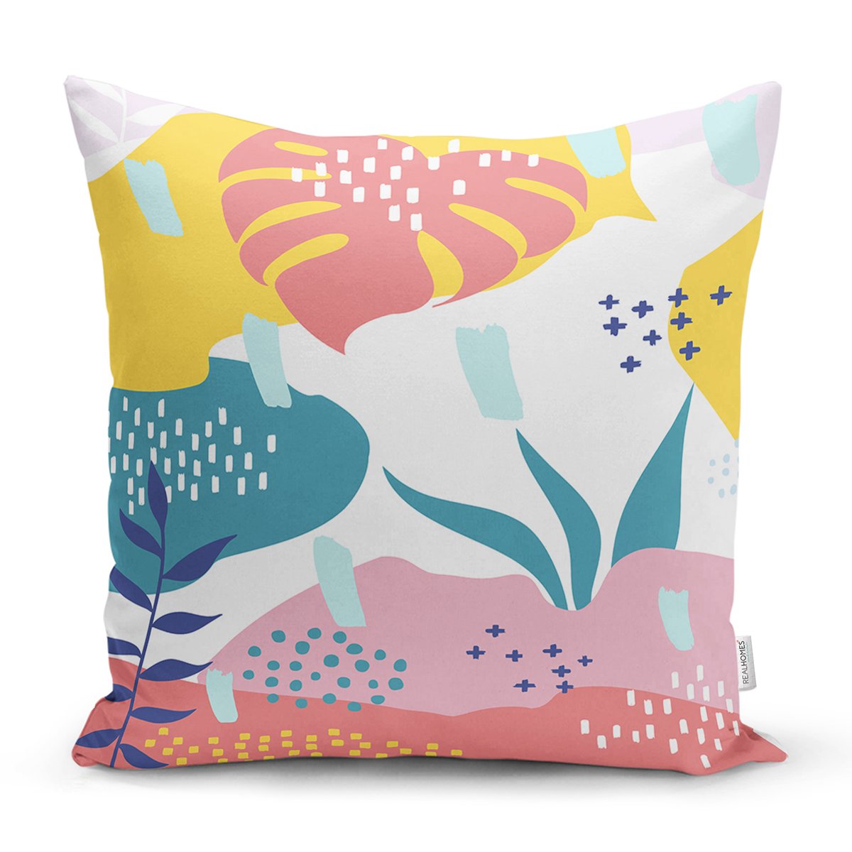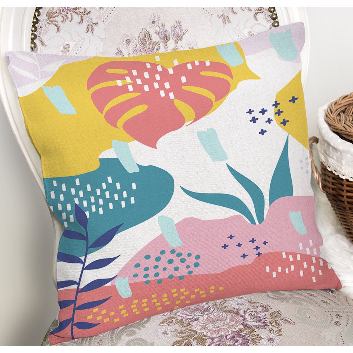 Beyaz Zeminli Renkli Onedraw Çizimli Dijital Baskılı Modern Yastık Kırlent Kılıfı