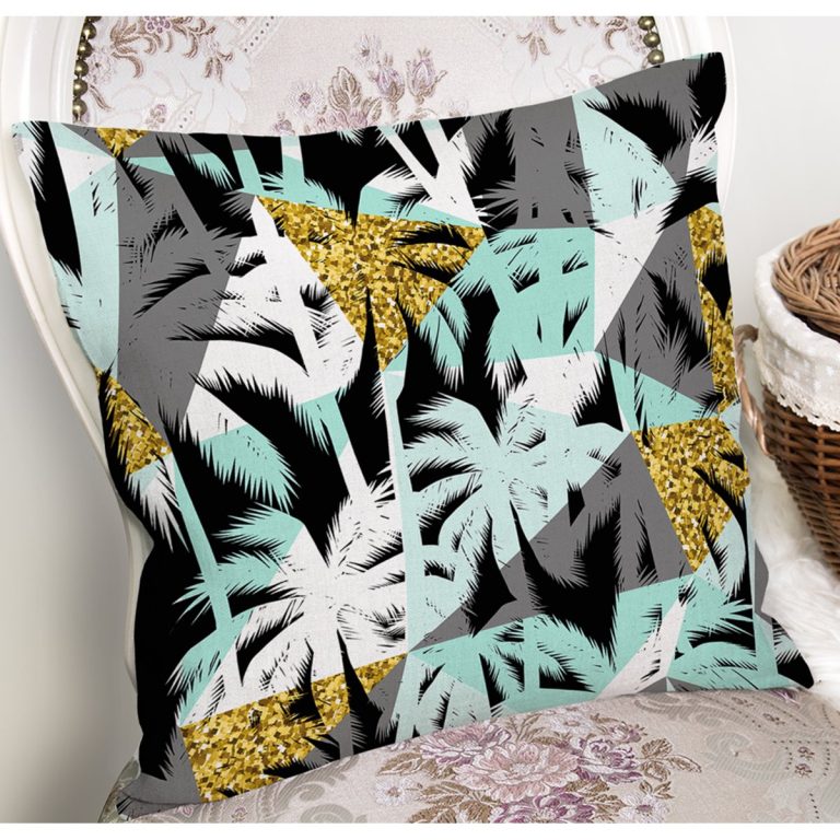 Beyaz Zeminli Renkli Palmiye Desenli Dijital Baskılı Modern Yastık Kırlent Kılıfı