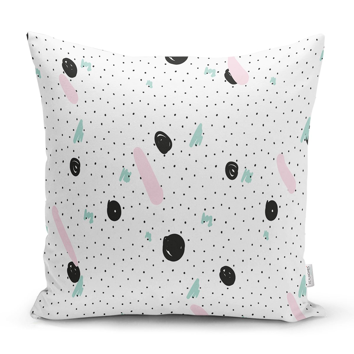 Beyaz Zeminli Siyah Puantiye Desenli Dijital Baskılı Modern Yastık Kırlent Kılıfı