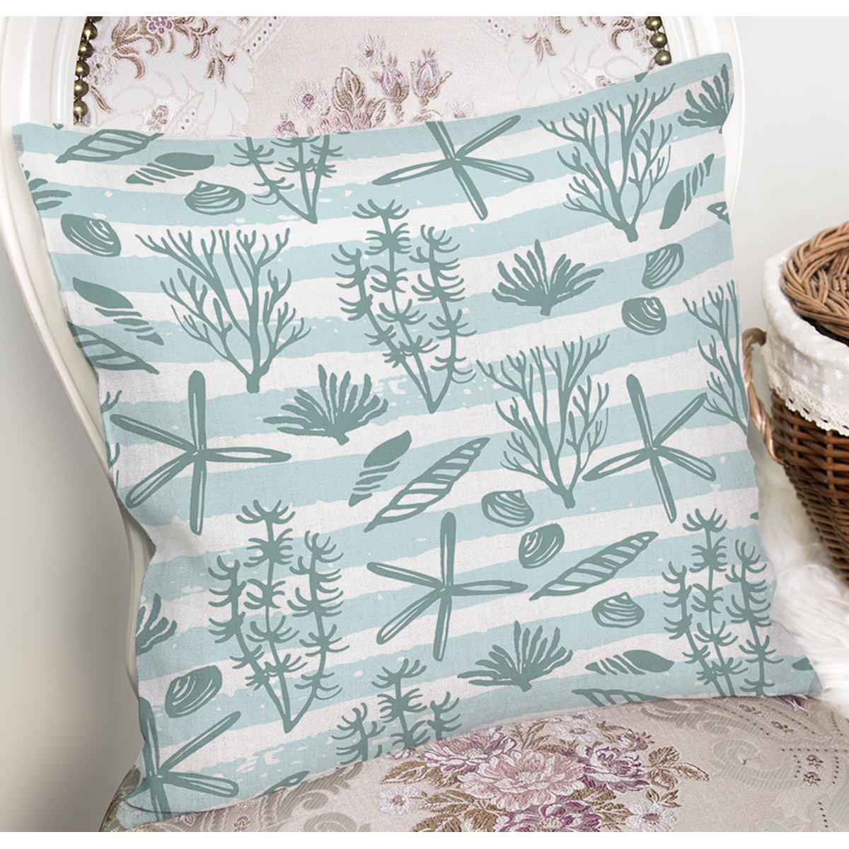 Beyaz Zeminli Su Yeşili Çizgili Dijital Baskılı Modern Yastık Kırlent Kılıfı
