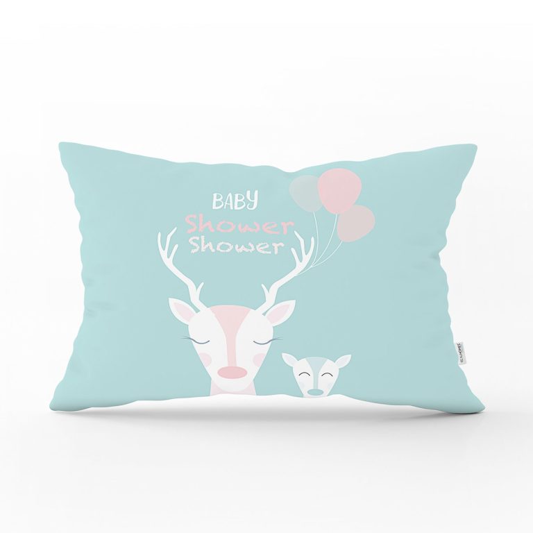 Beyaz Zeminli Unicorn Baby Shower Desenli Çocuk Odası Dikdörtgen Yastık Kılıfı