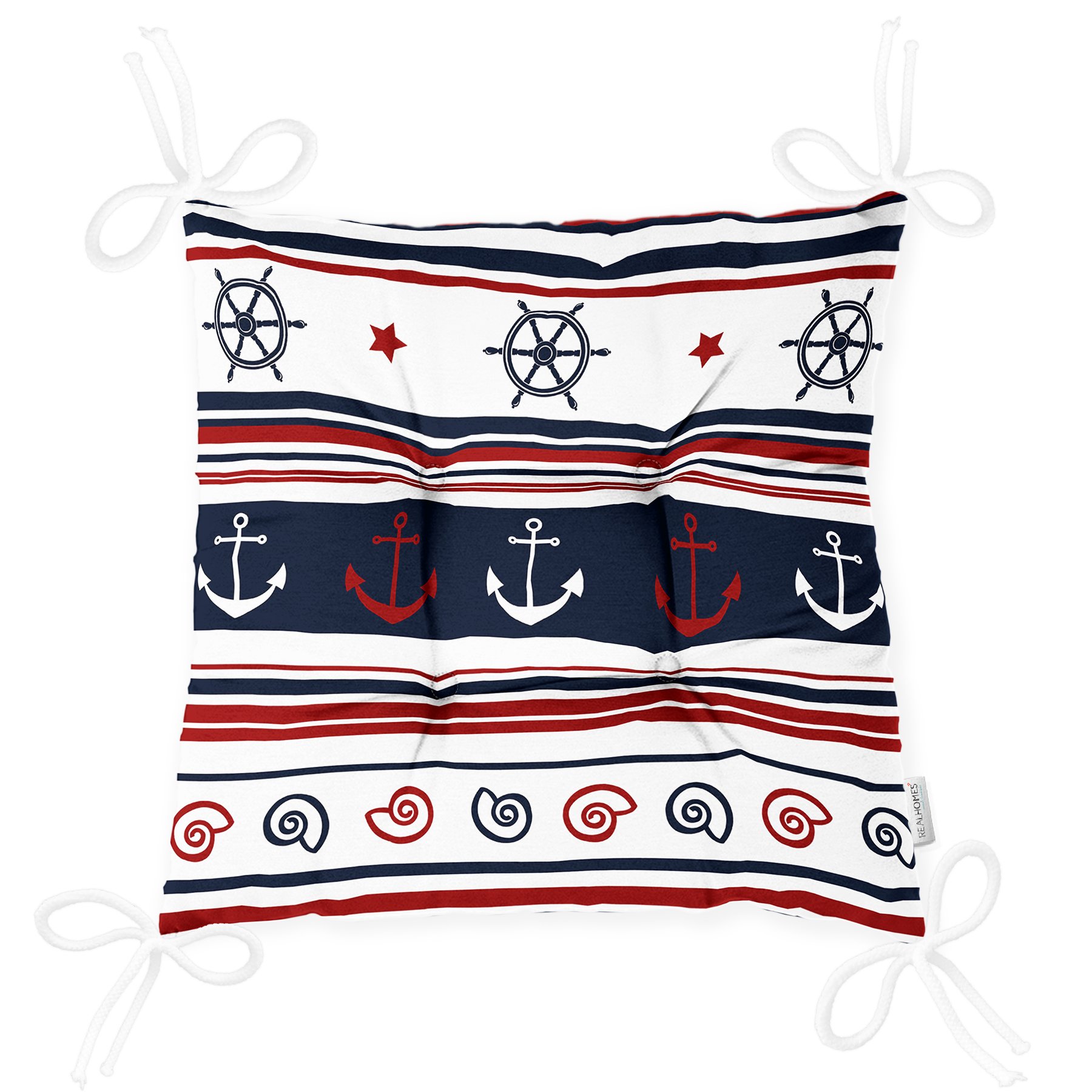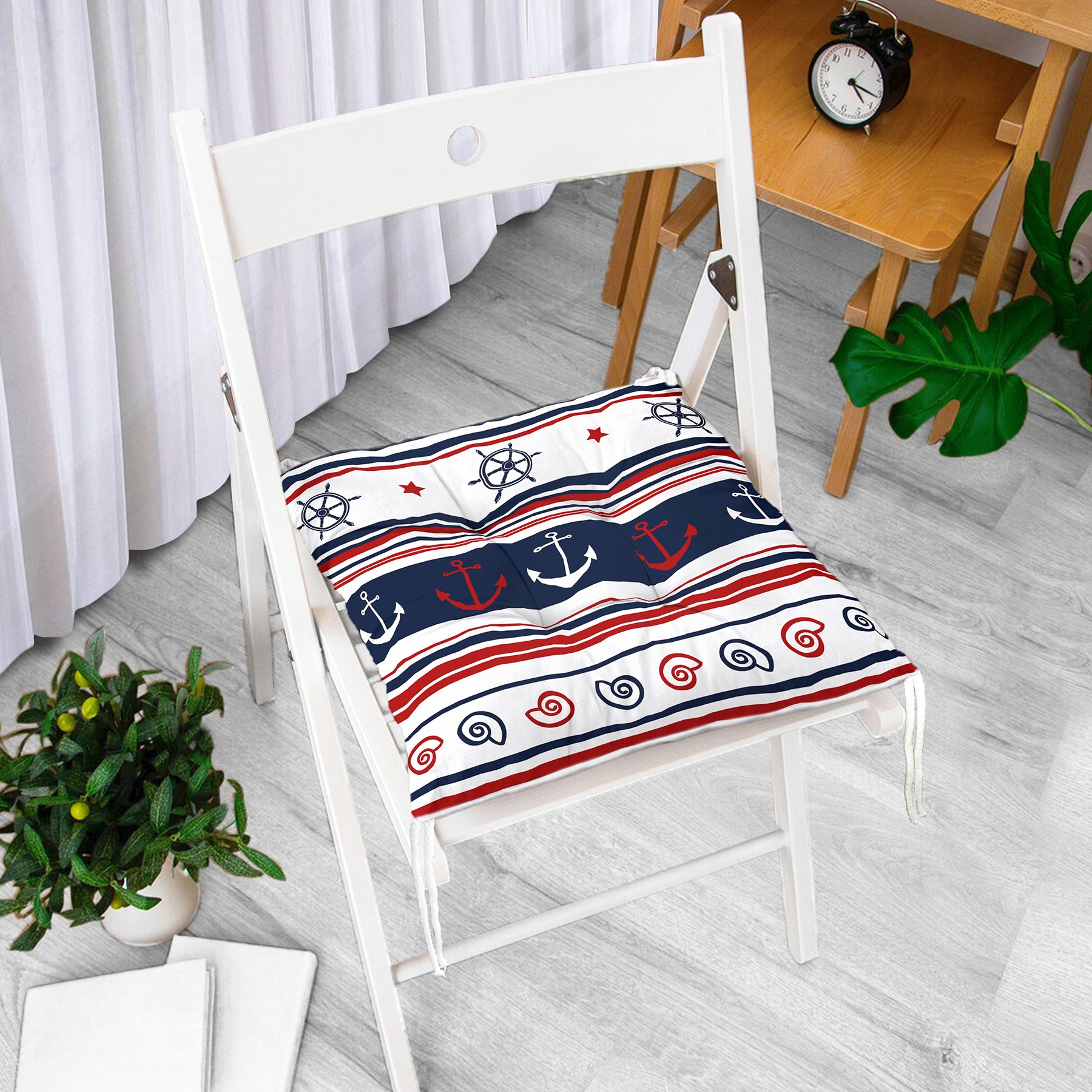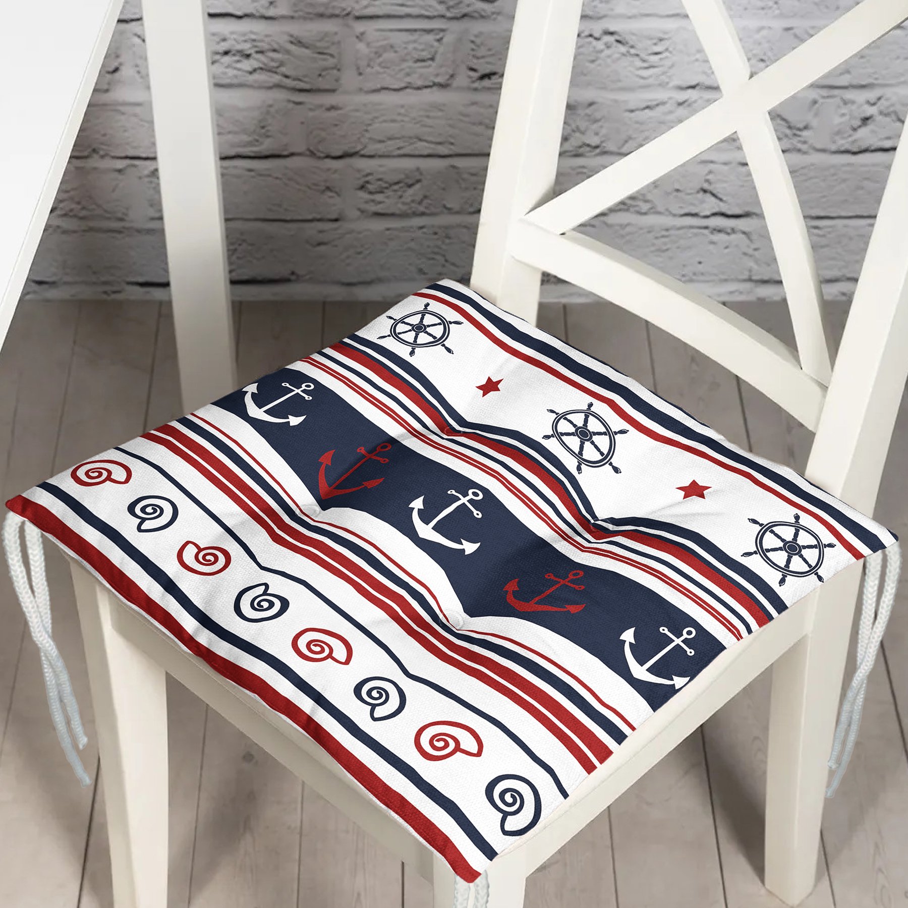 Bordo Lacivert Renkli Çapa Dümen Temalı Dijital Baskılı Modern Pofidik Sandalye Minderi