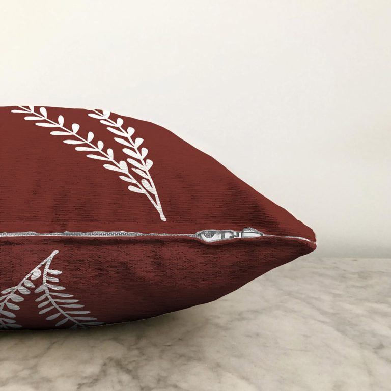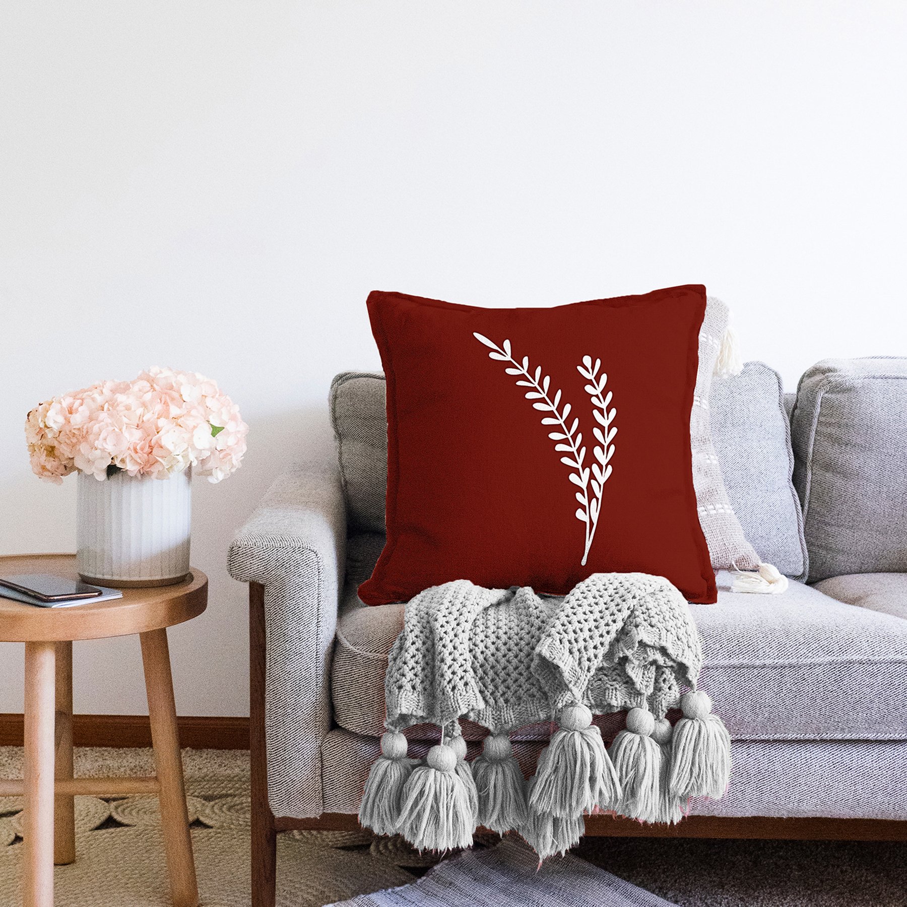 Bordo Zemin Beyaz Çiçekli Raşel Yastık Kırlent Kılıfı