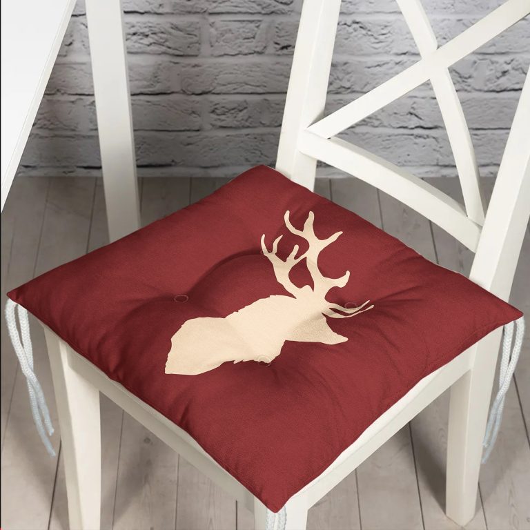Bordo Zemin Krem Geyik Tasarımlı Modern Pofidik Sandalye Minderi