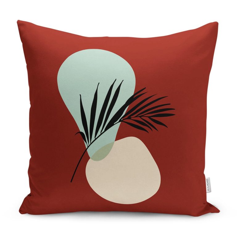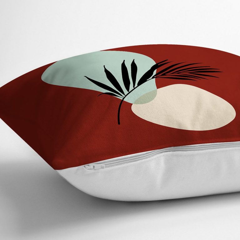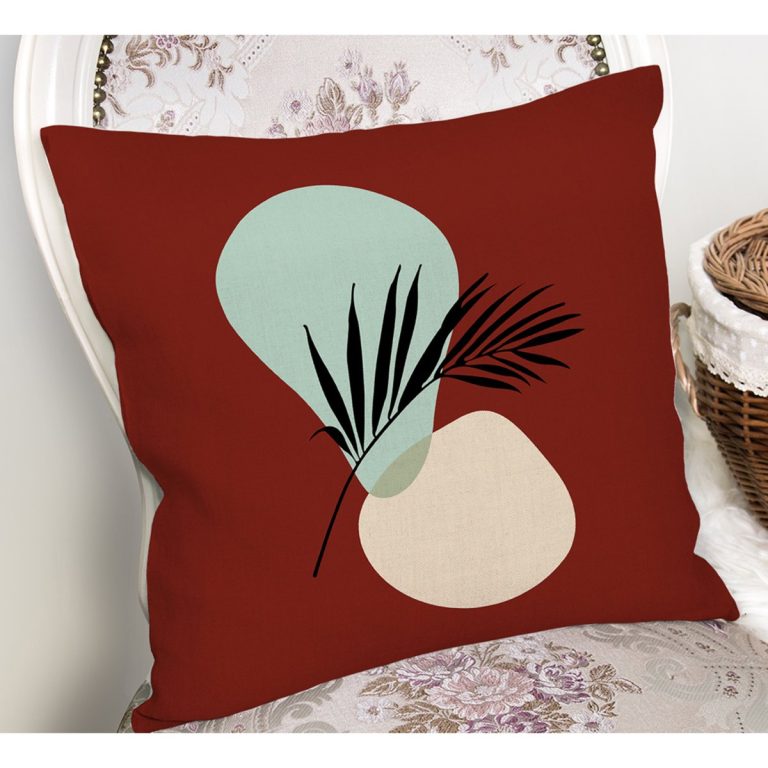 Bordo Zeminli Tropik Yaprak Detaylı Yastık Kırlent Kılıfı