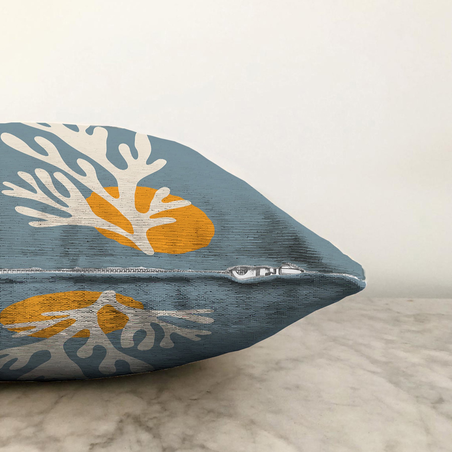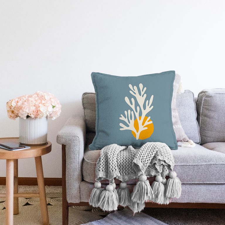 Buz Mavisi Üzerine Onedraw Çizimli Raşel Yastık Kırlent Kılıfı