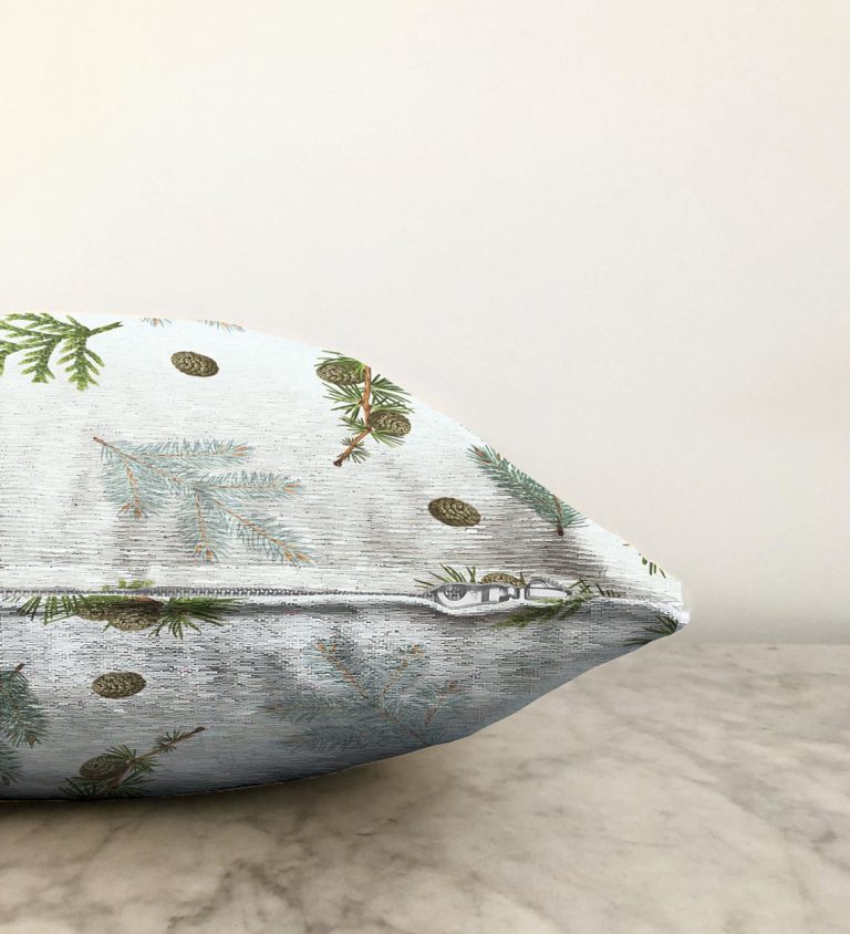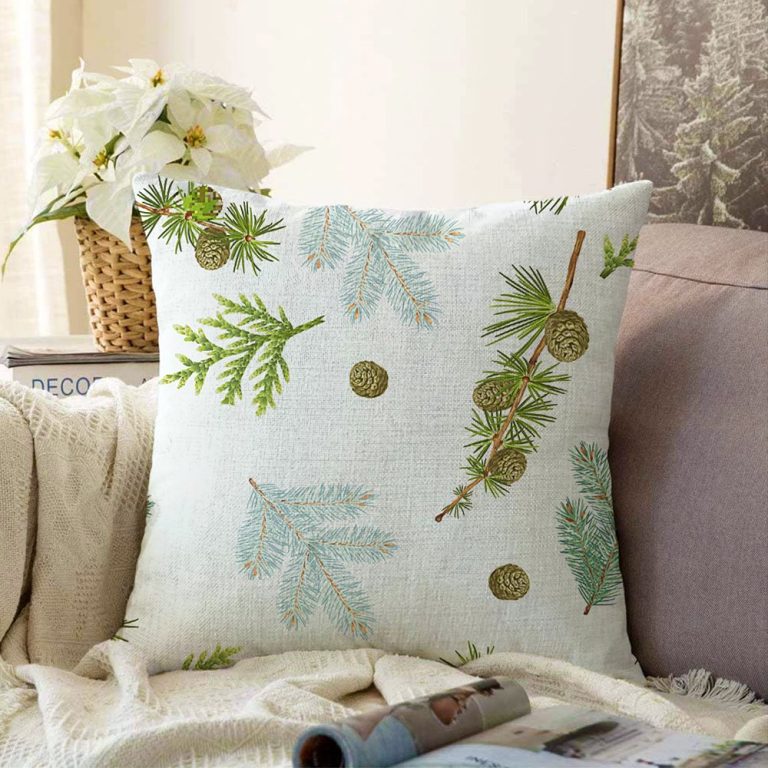 Çam Dalı Motifli Dijital Baskılı Raşel Yastık Kırlent Kılıfı