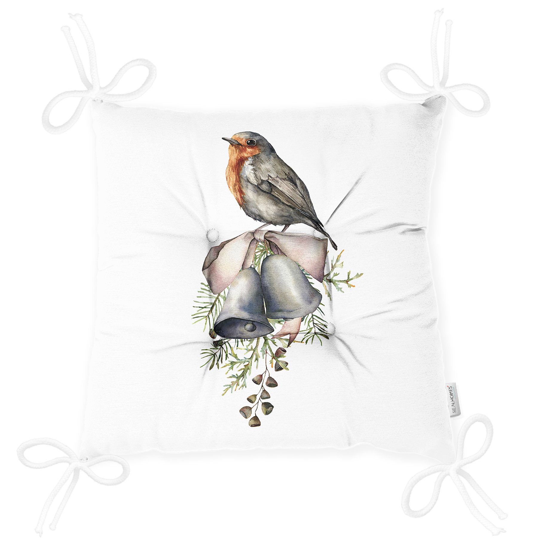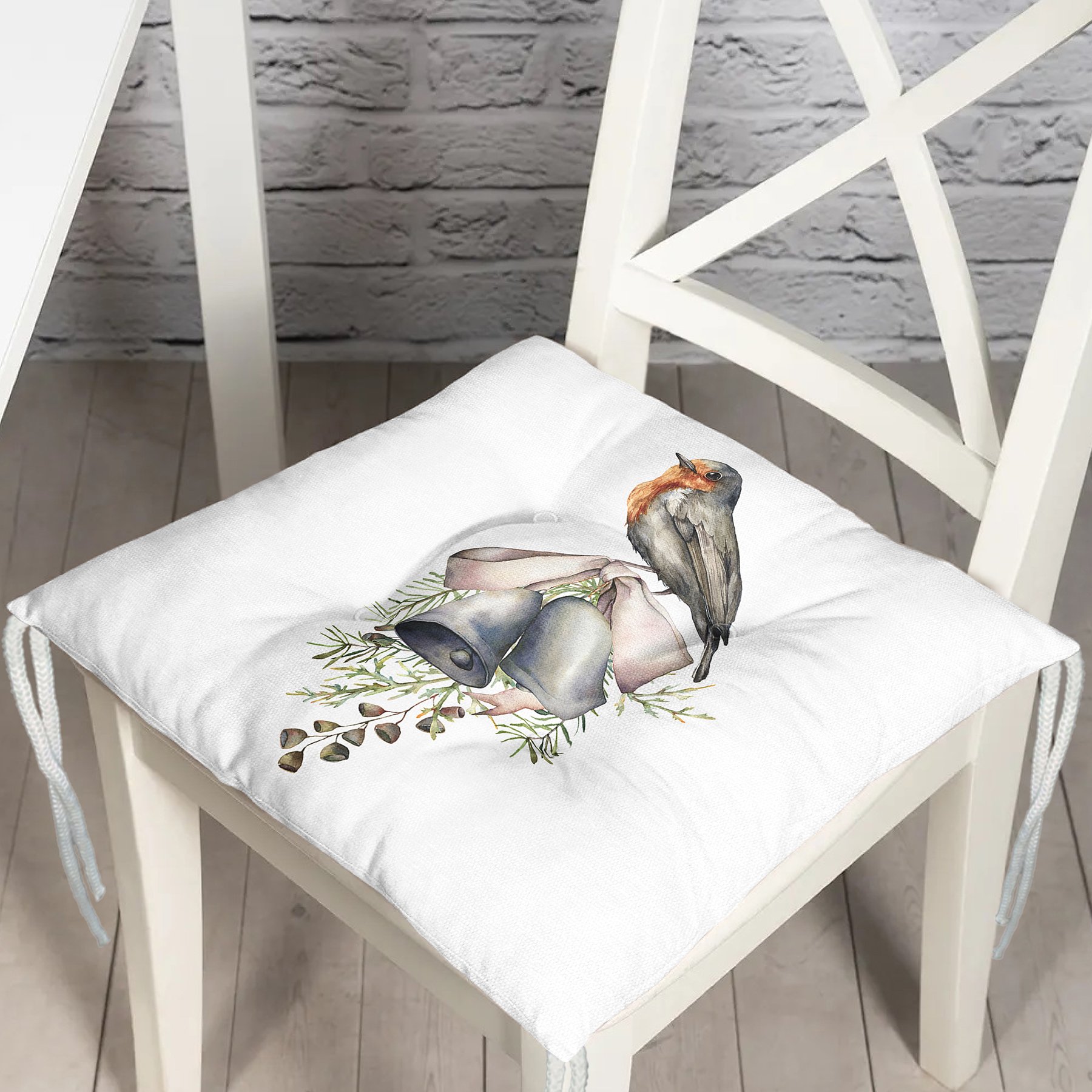 Çan & Kuş Motifli Dijital Baskılı Modern Pofidik Sandalye Minderi