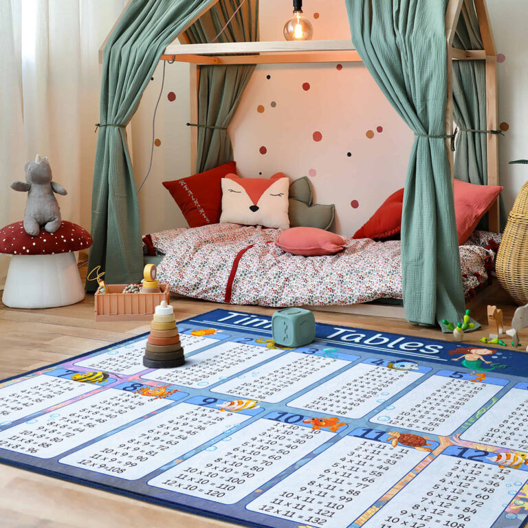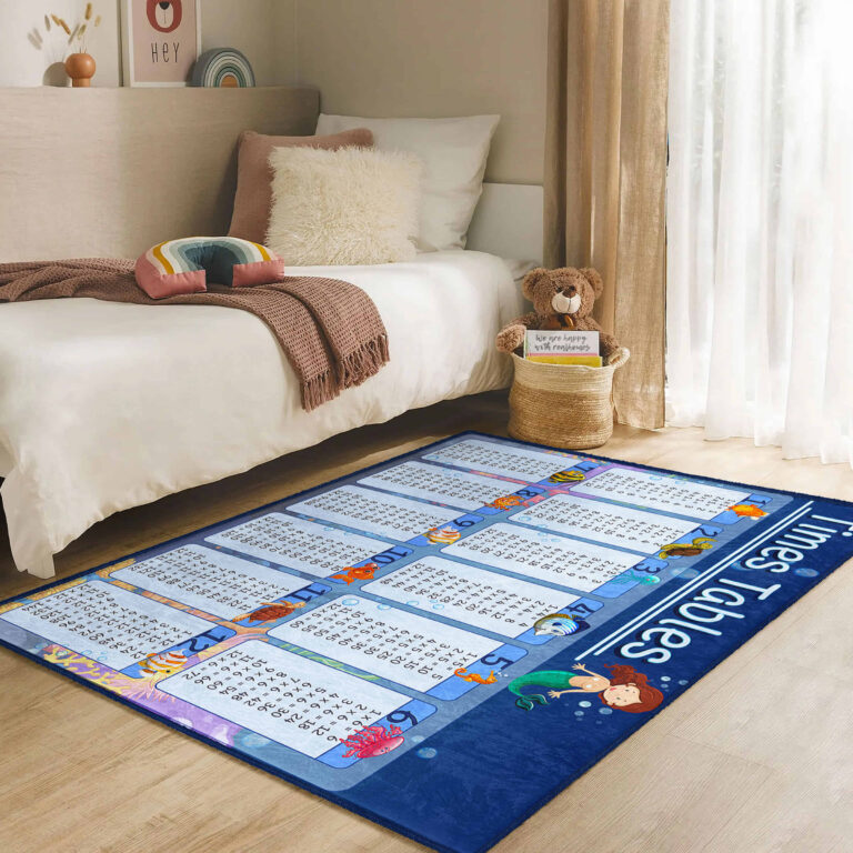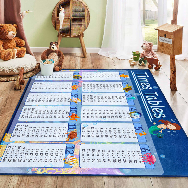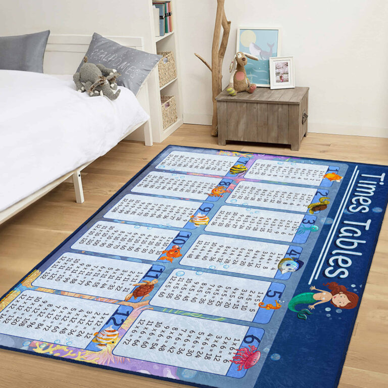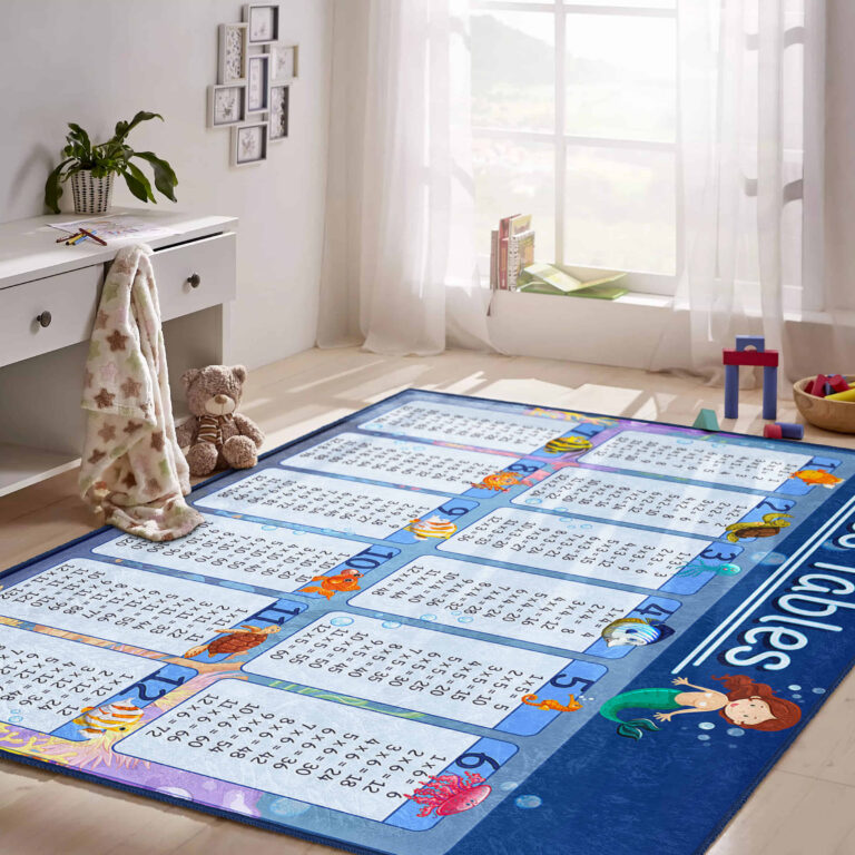 Canlı Renklerde Deniz Temalı Çocuk Halısı – 3D Dijital Baskılı Kaymaz Tabanlı Dikdörtgen Halı