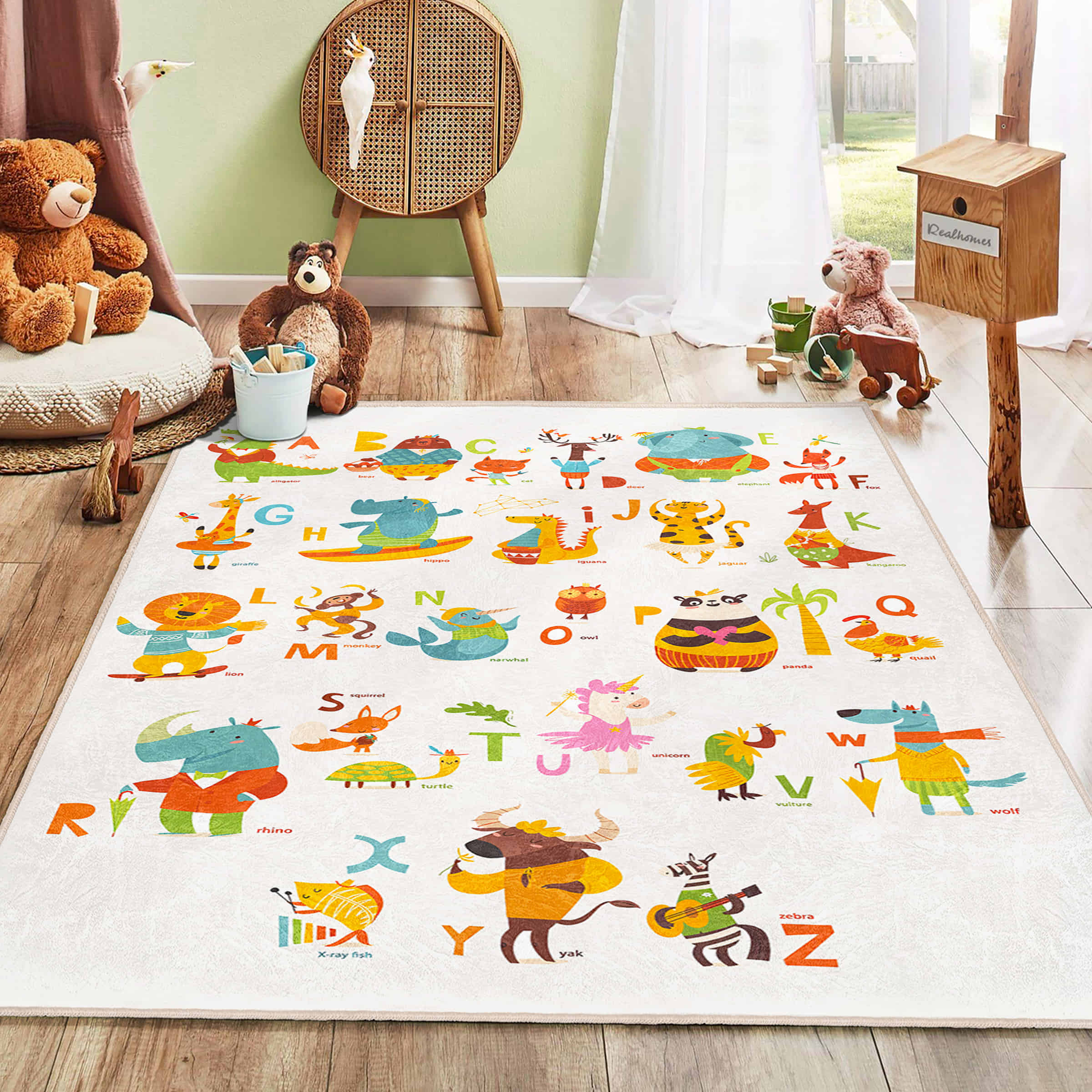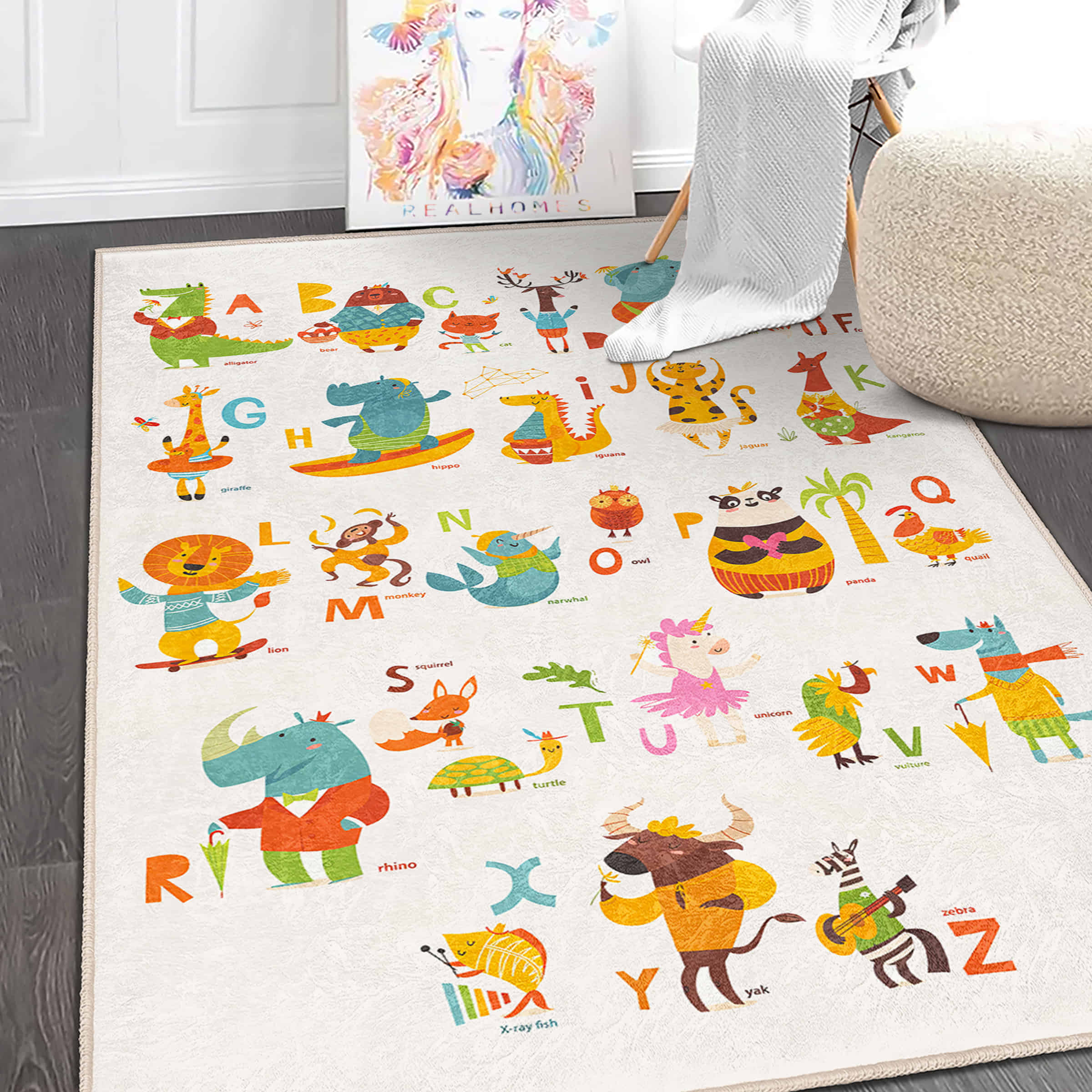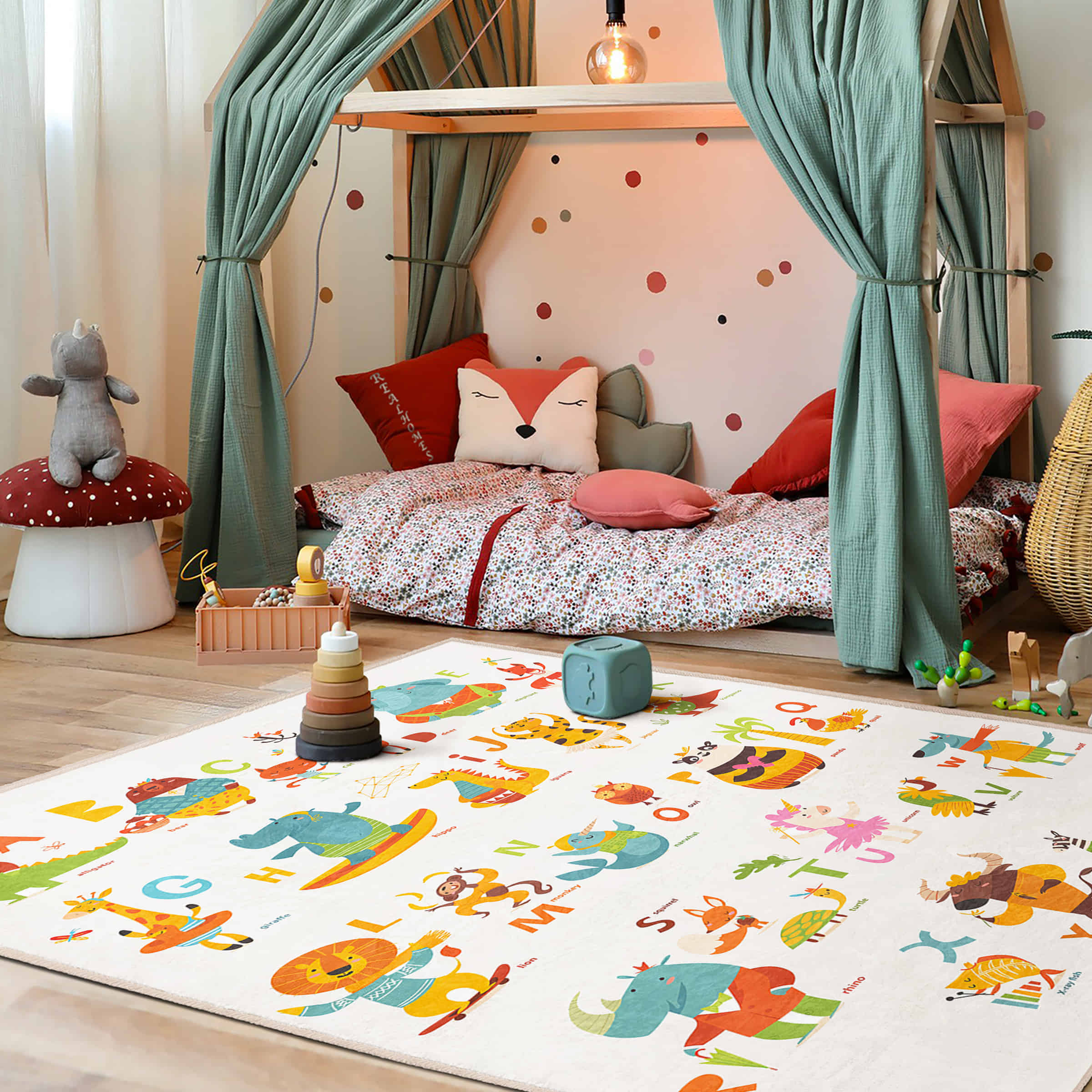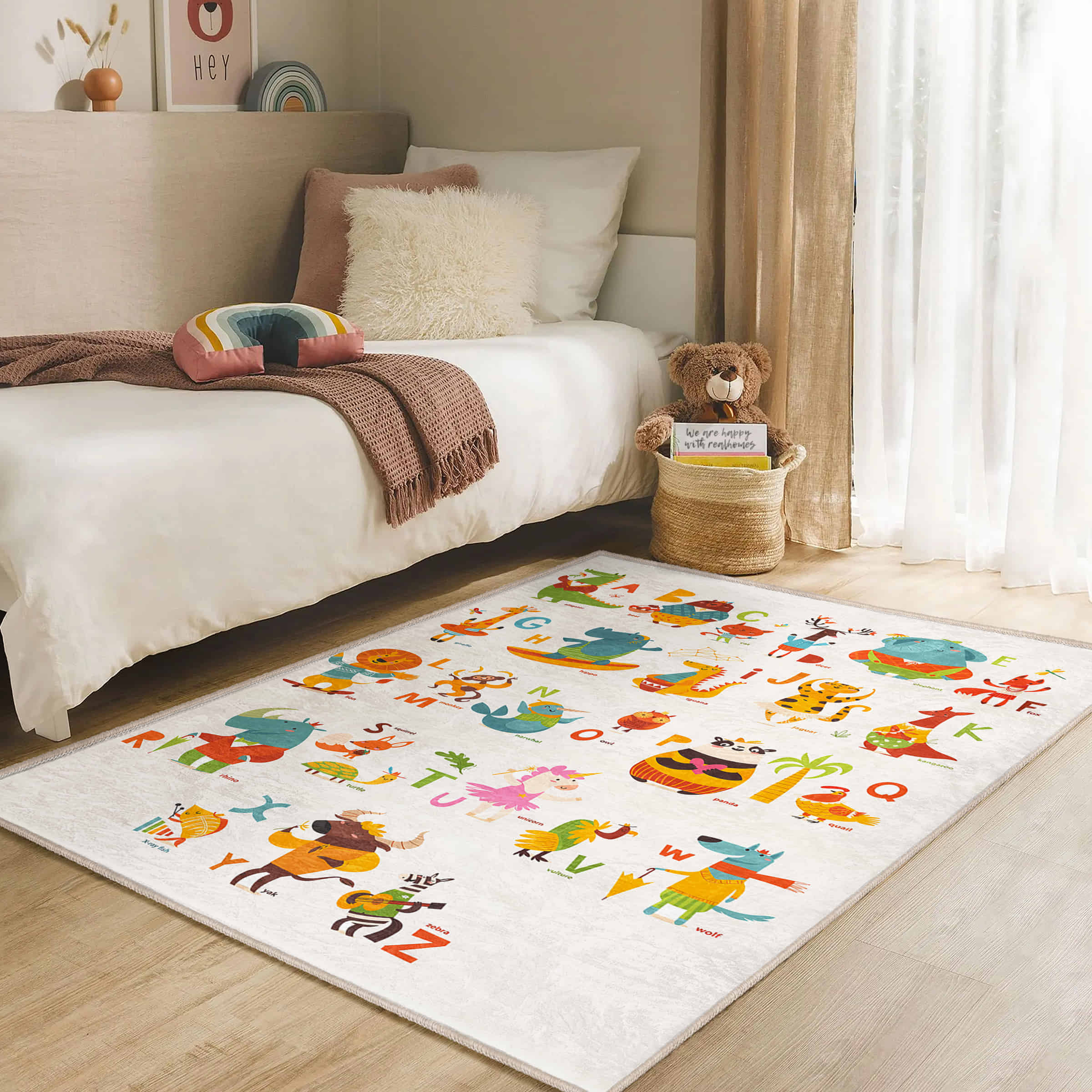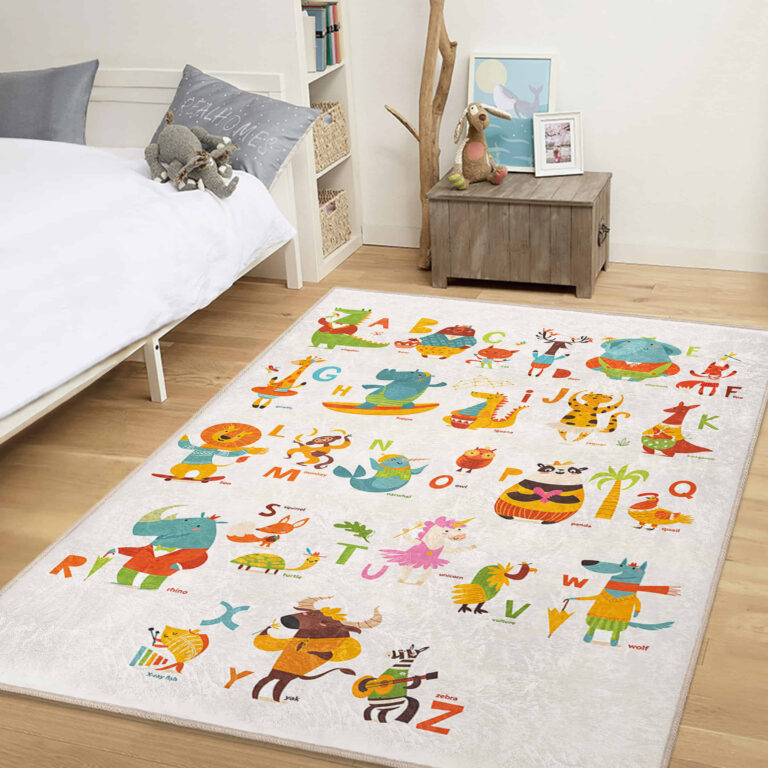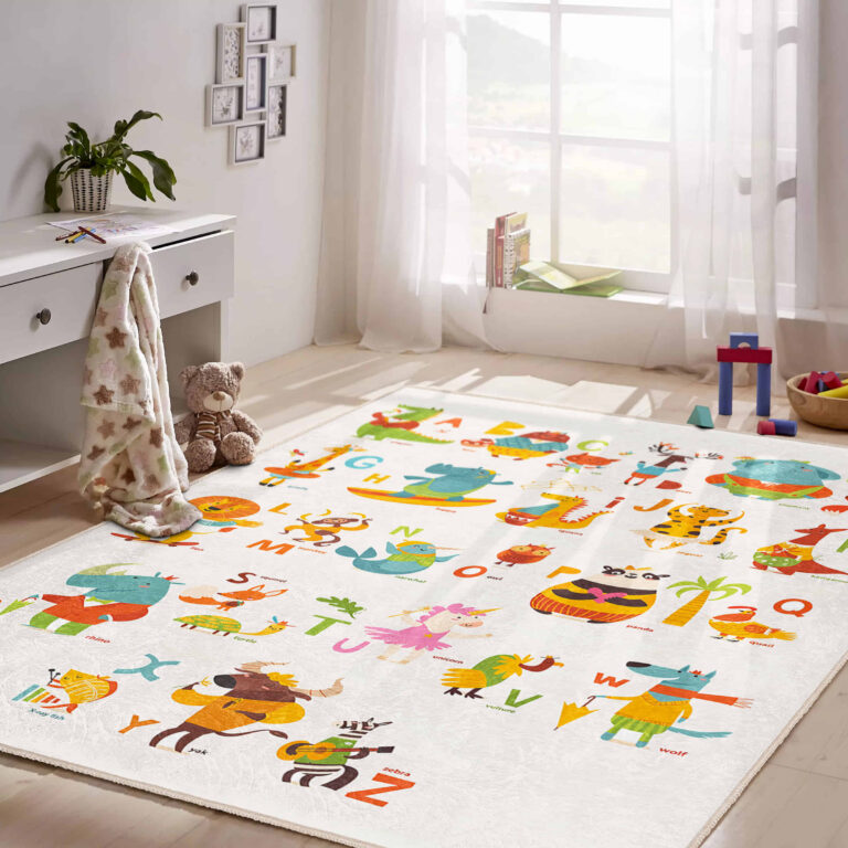Canlı Renklerde Hayvan Figürleri ile Çocuk Odası için Yıkanabilir Kaymaz Taban Halı