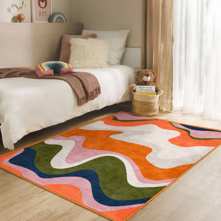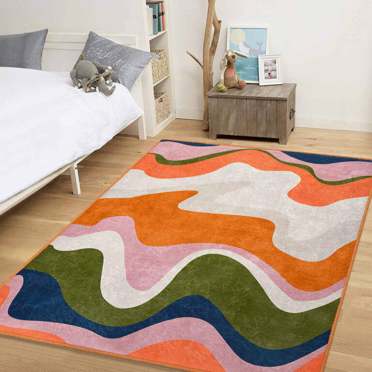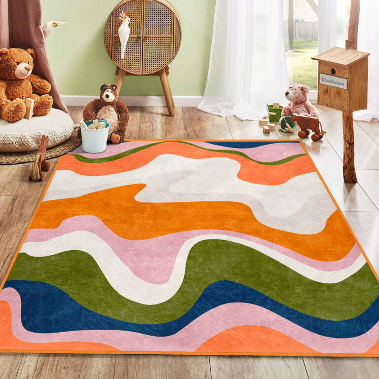 Canlı Renklerle Modern Dalga Desenli Yıkanabilir Kaymaz Taban Dikdörtgen Çocuk Halısı