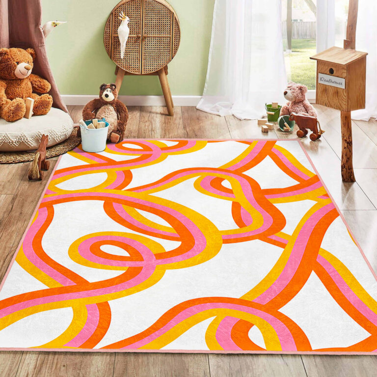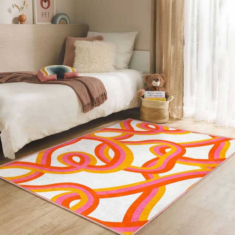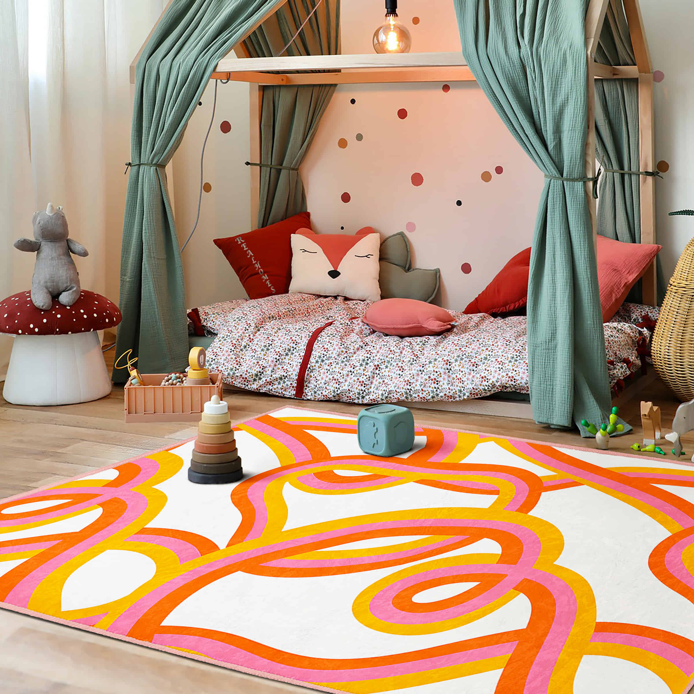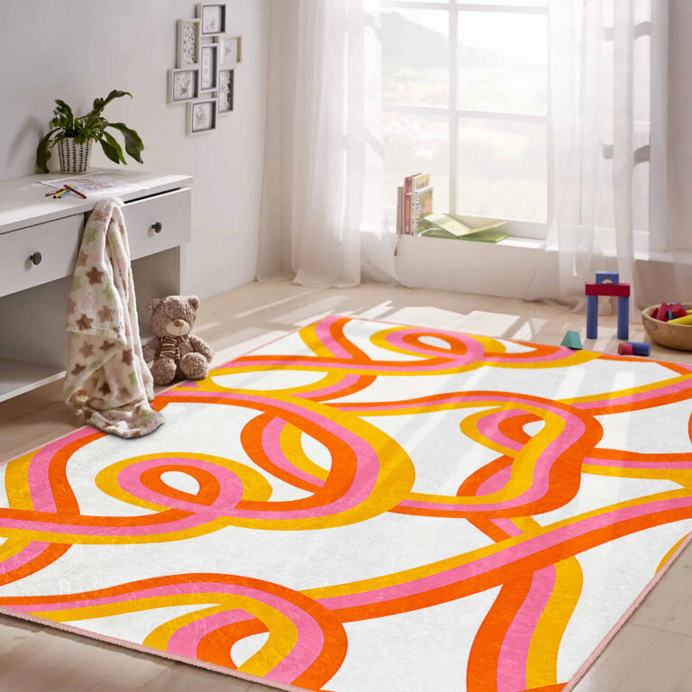 Canlı Renklerle Şekil Oluşturan Modern Desenli Yıkanabilir Kaymaz Taban Çocuk Halısı