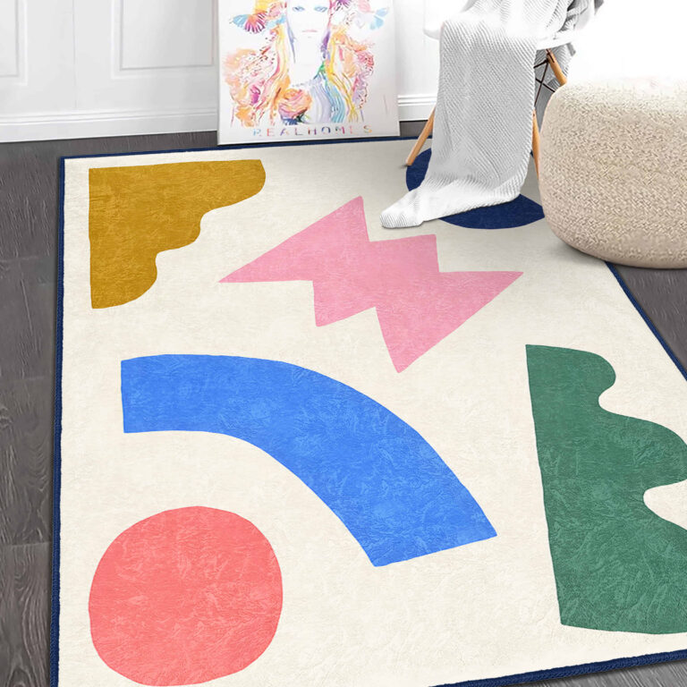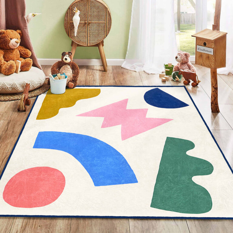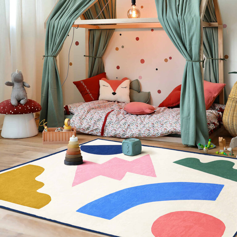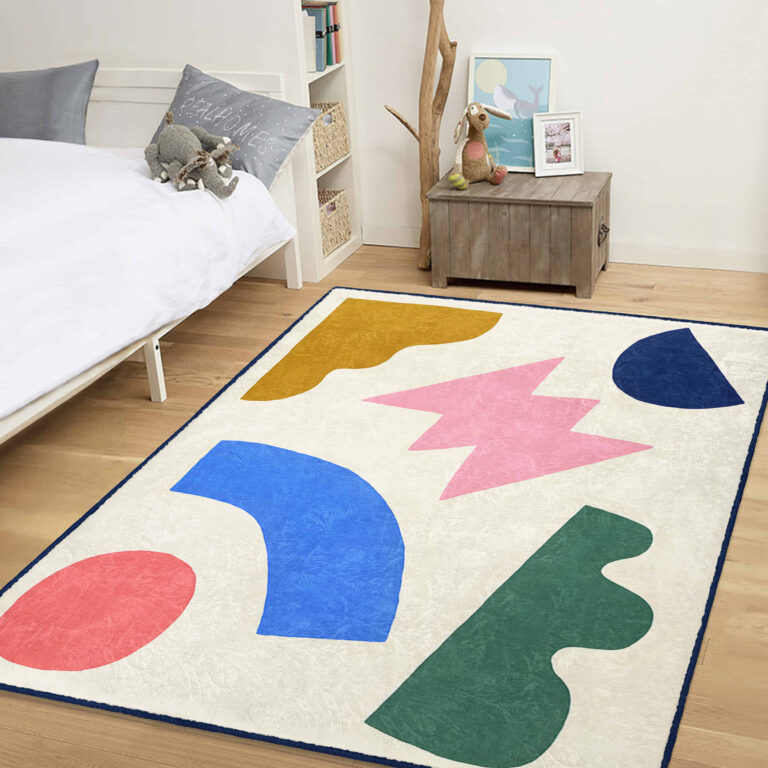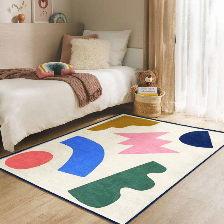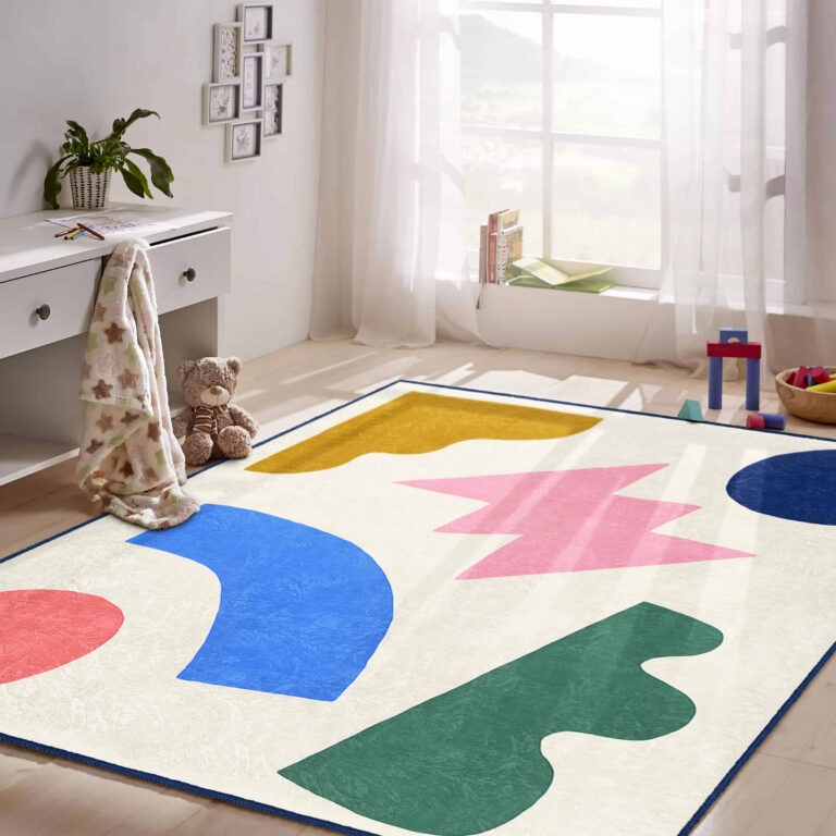Canlı Renklerle Tasarlanmış Abstrakt Desenli Yıkanabilir Kaymaz Taban Çocuk Halısı