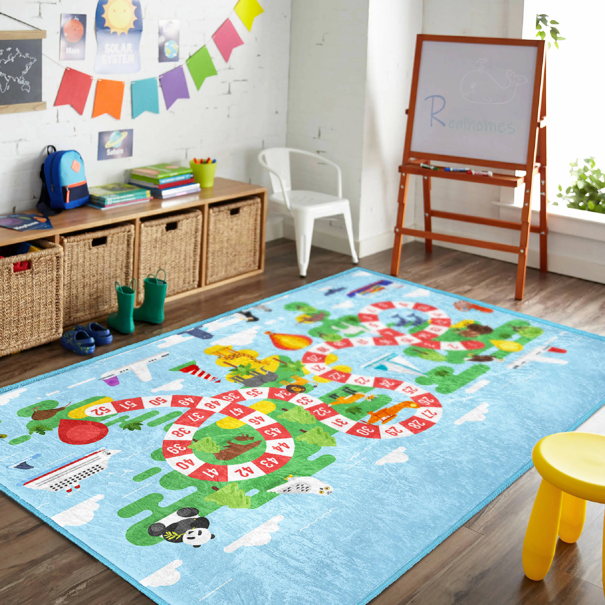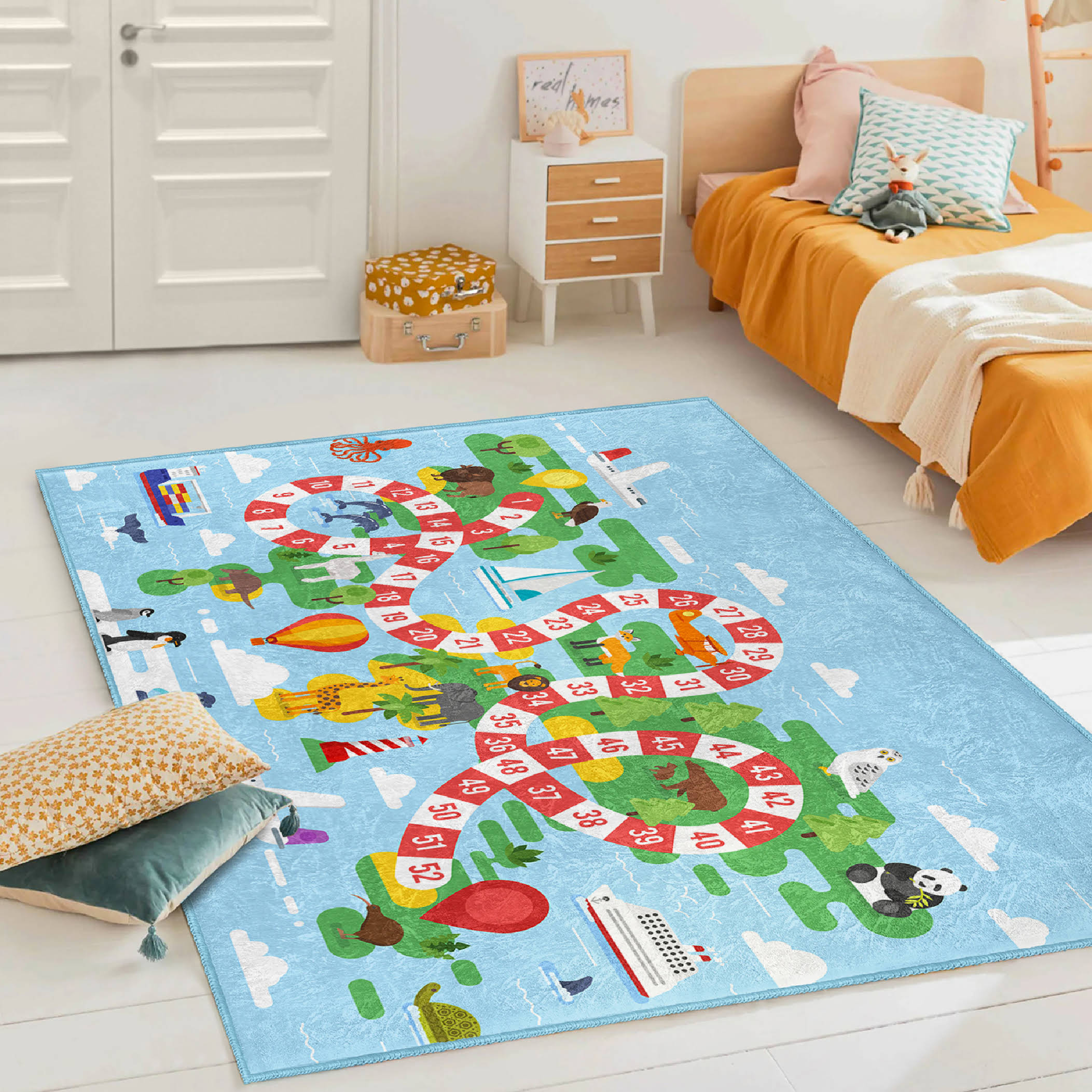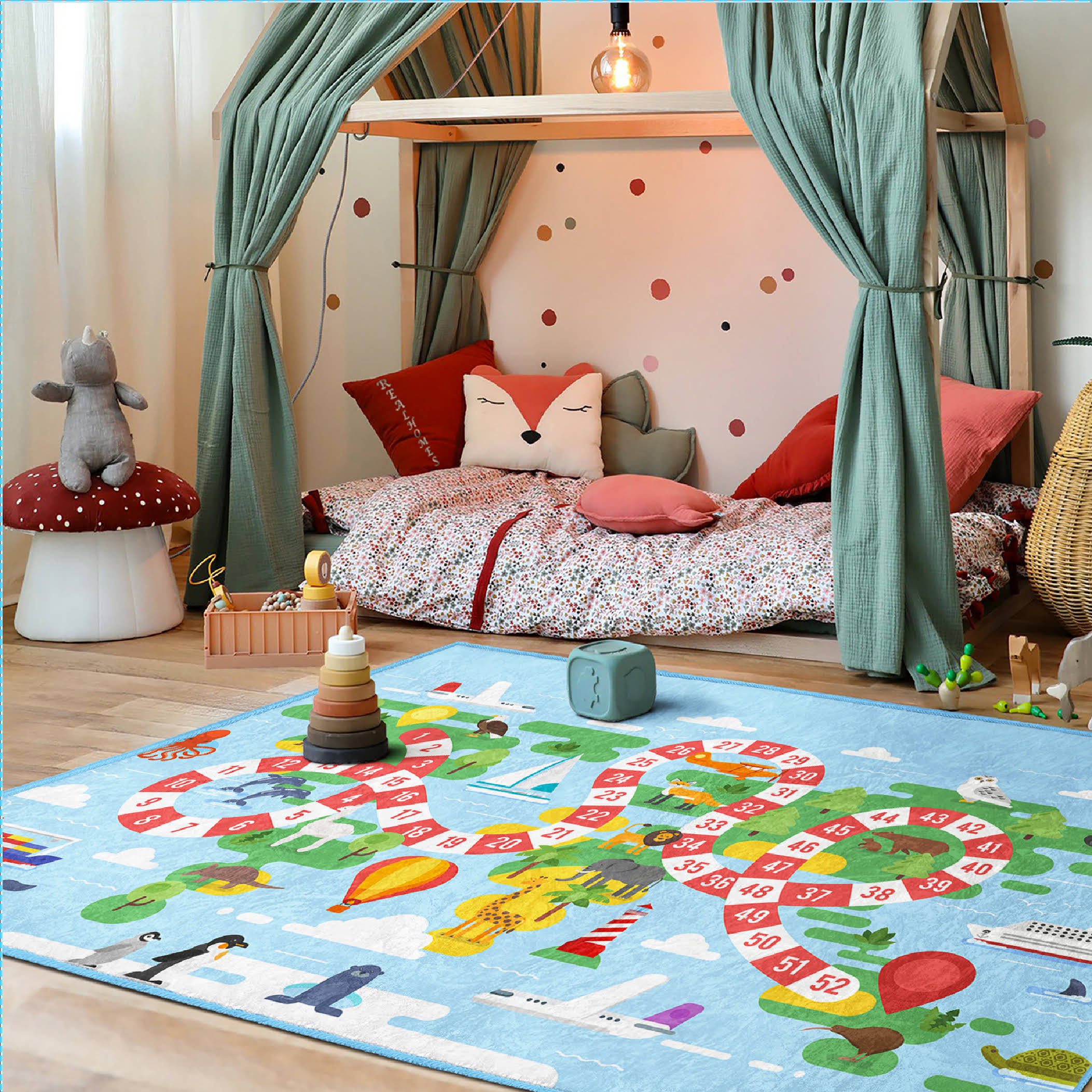 Canlı Renklerle Tasarlanmış Hayvan Temalı Çocuk Halısı – Kaymaz Taban ile Güvenli Oyun Alanı