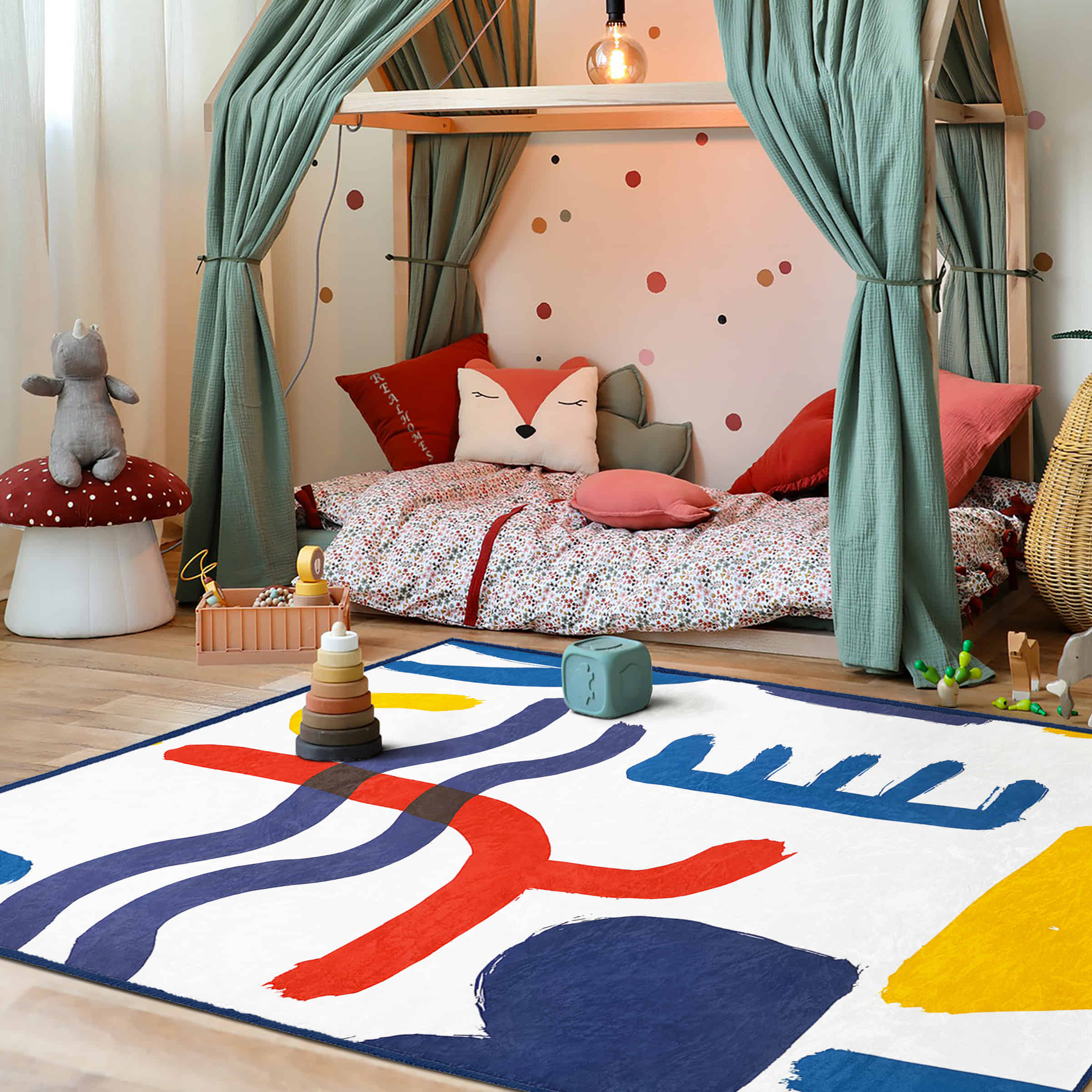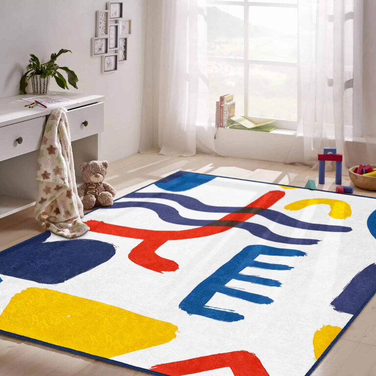 Canlı Renklerle Tasarlanmış Modern Desenli Yıkanabilir Kaymaz Taban Çocuk Halısı – Dikdörtgen