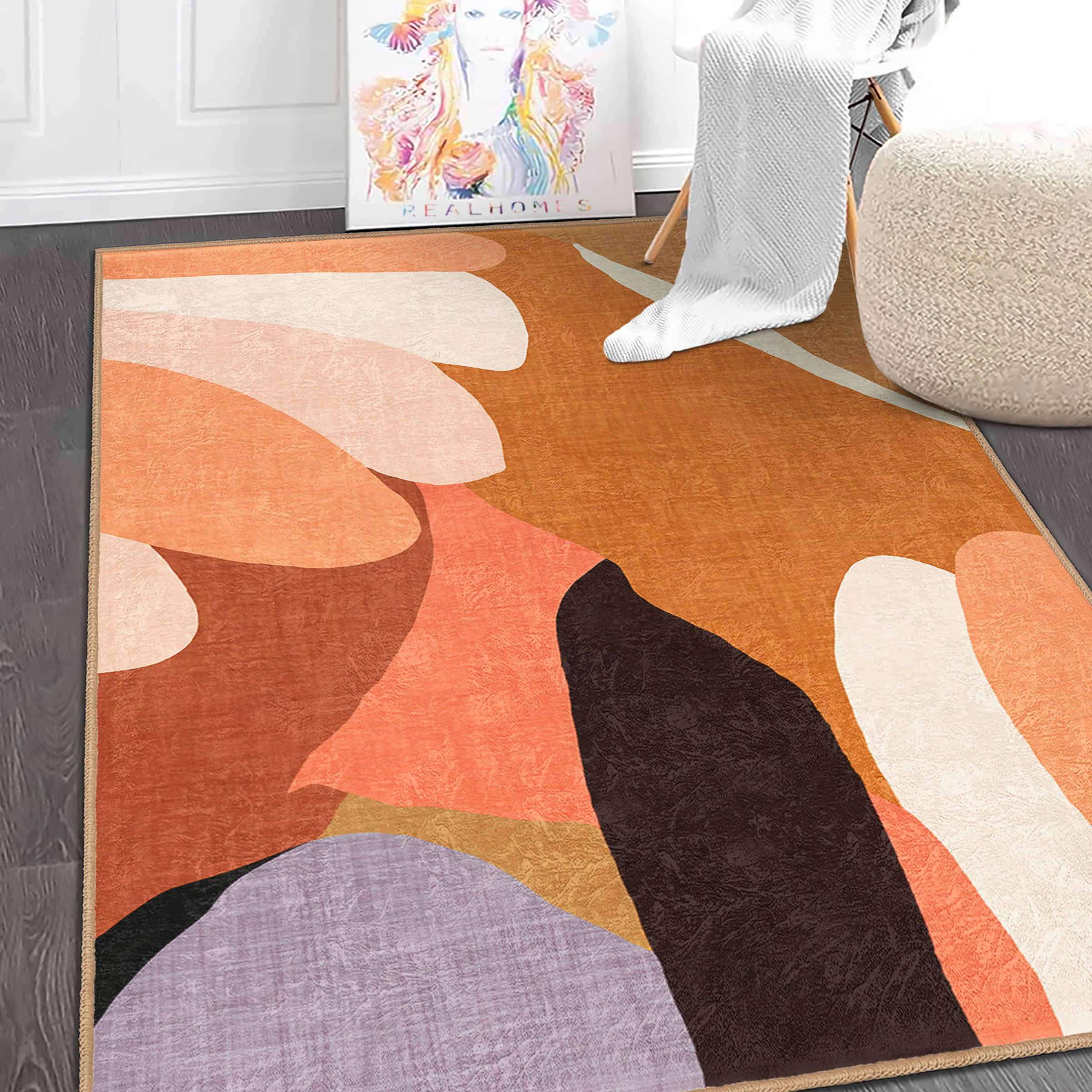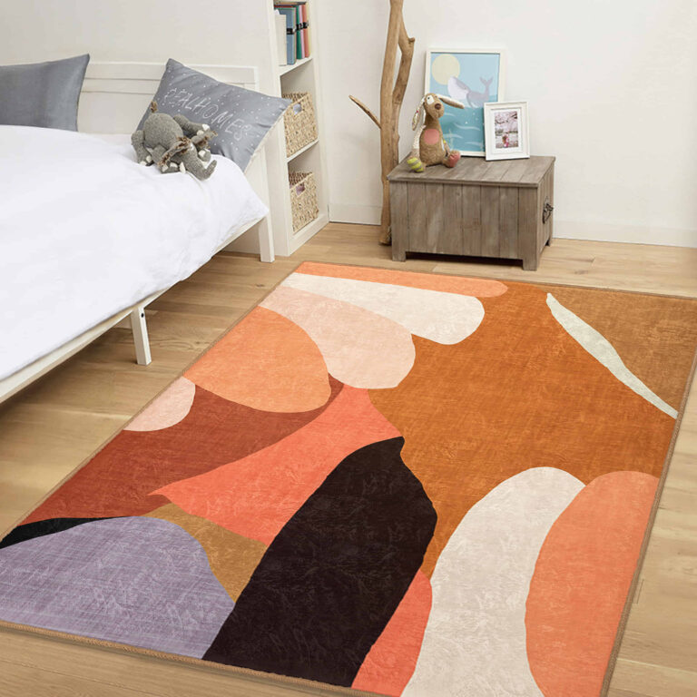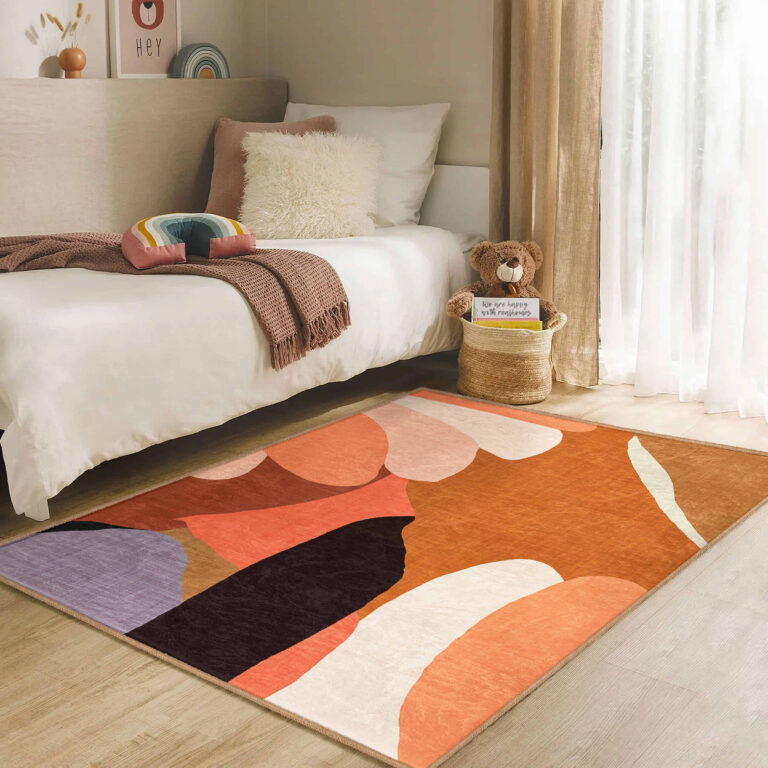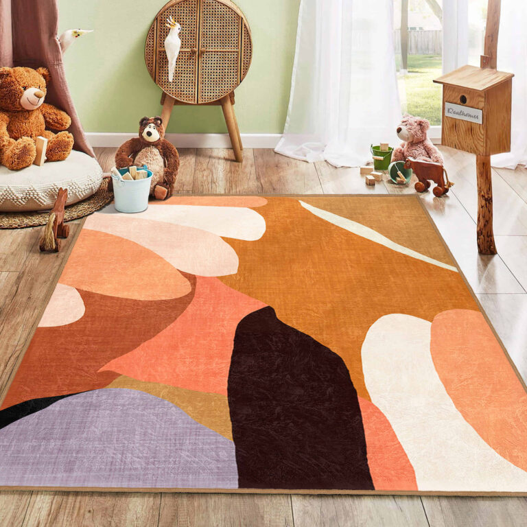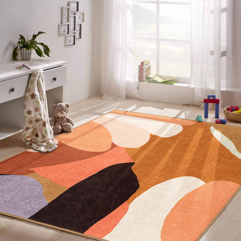 Canlı Renklerle Tasarlanmış Modern Soyut Desenli Dikdörtgen Çocuk Halısı – Kaymaz Tabanlı Yıkanabilir Halı
