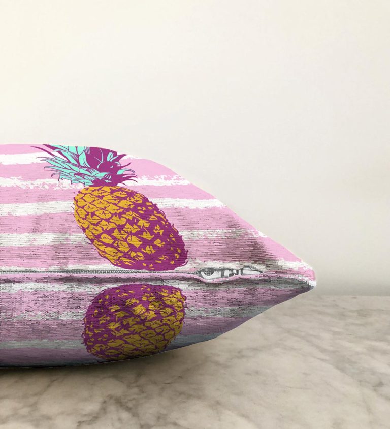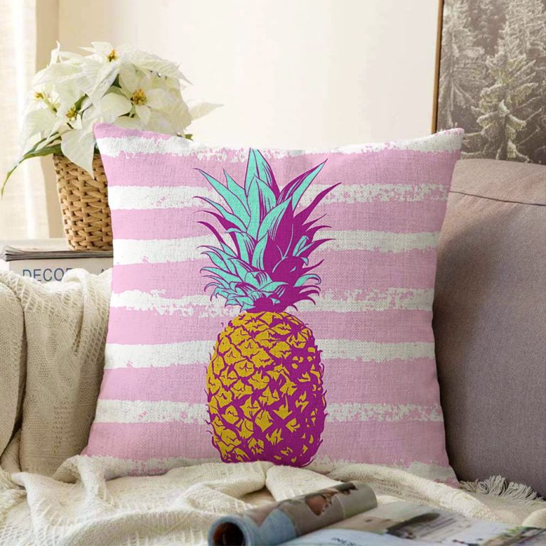 Canlı Renkli Ananas Motifli Dijital Baskılı Raşel Yastık Kırlent Kılıfı
