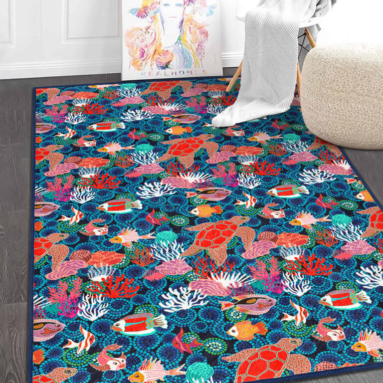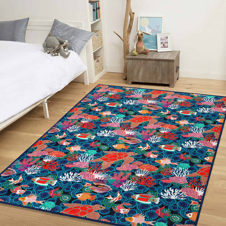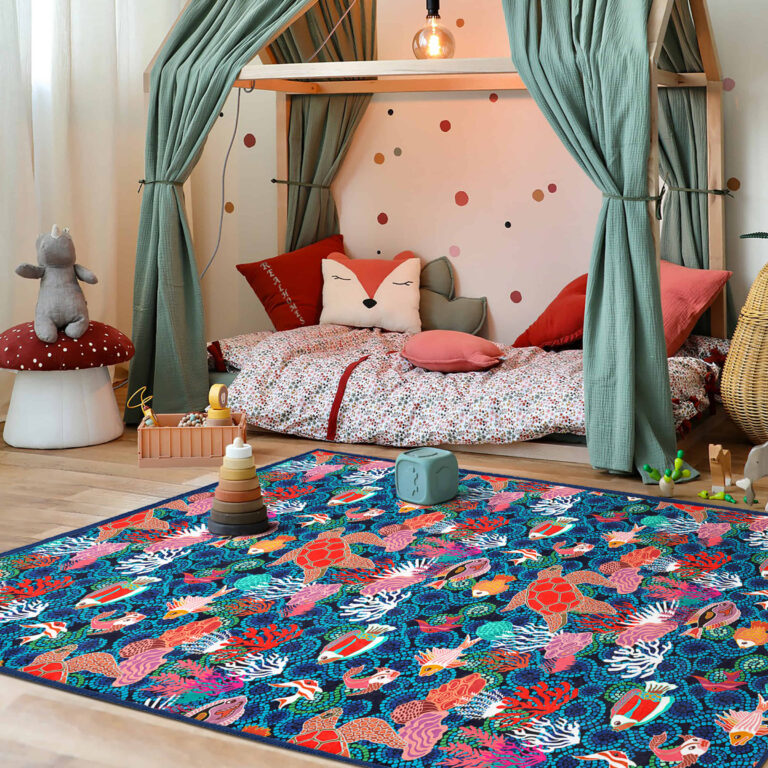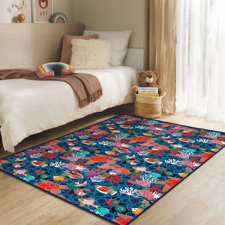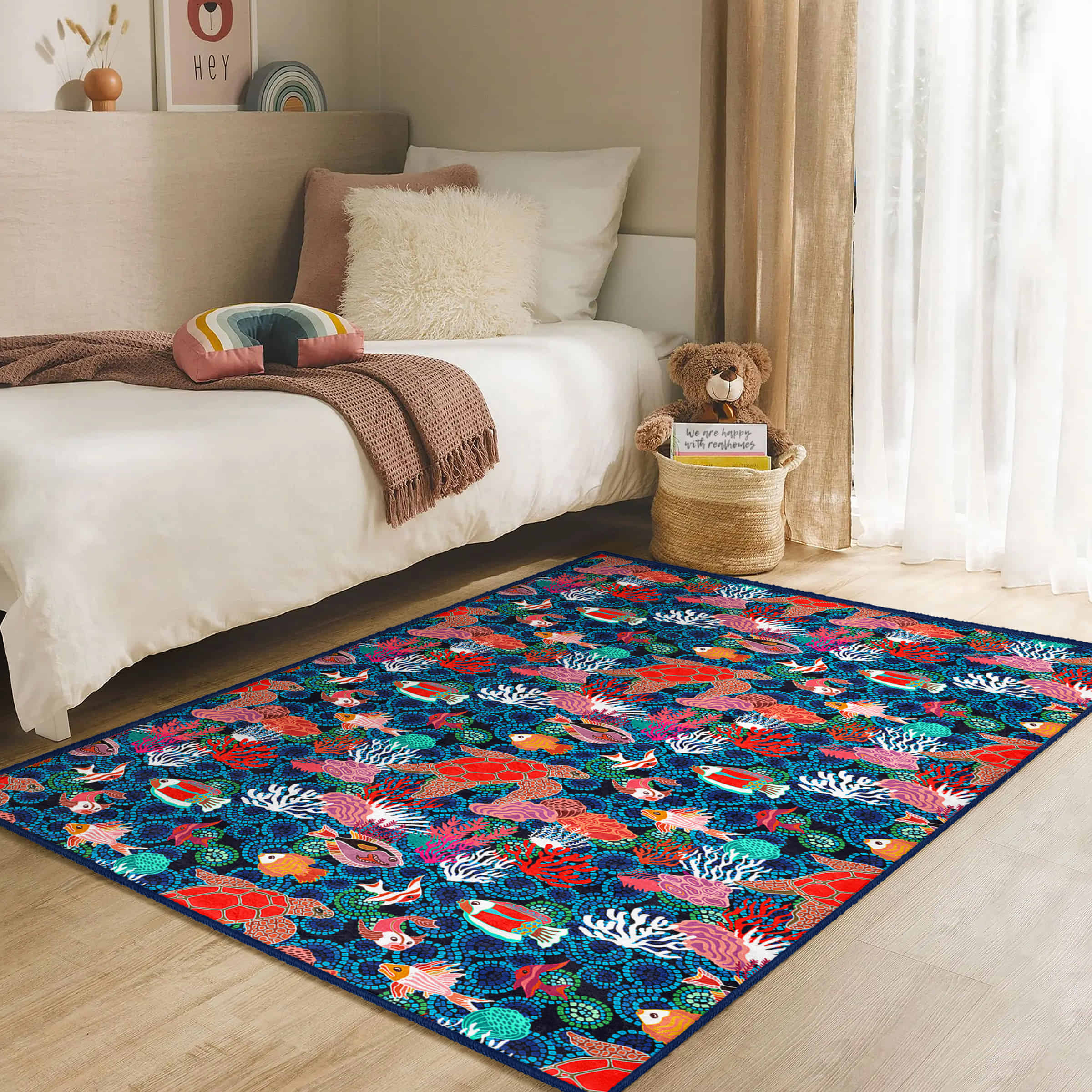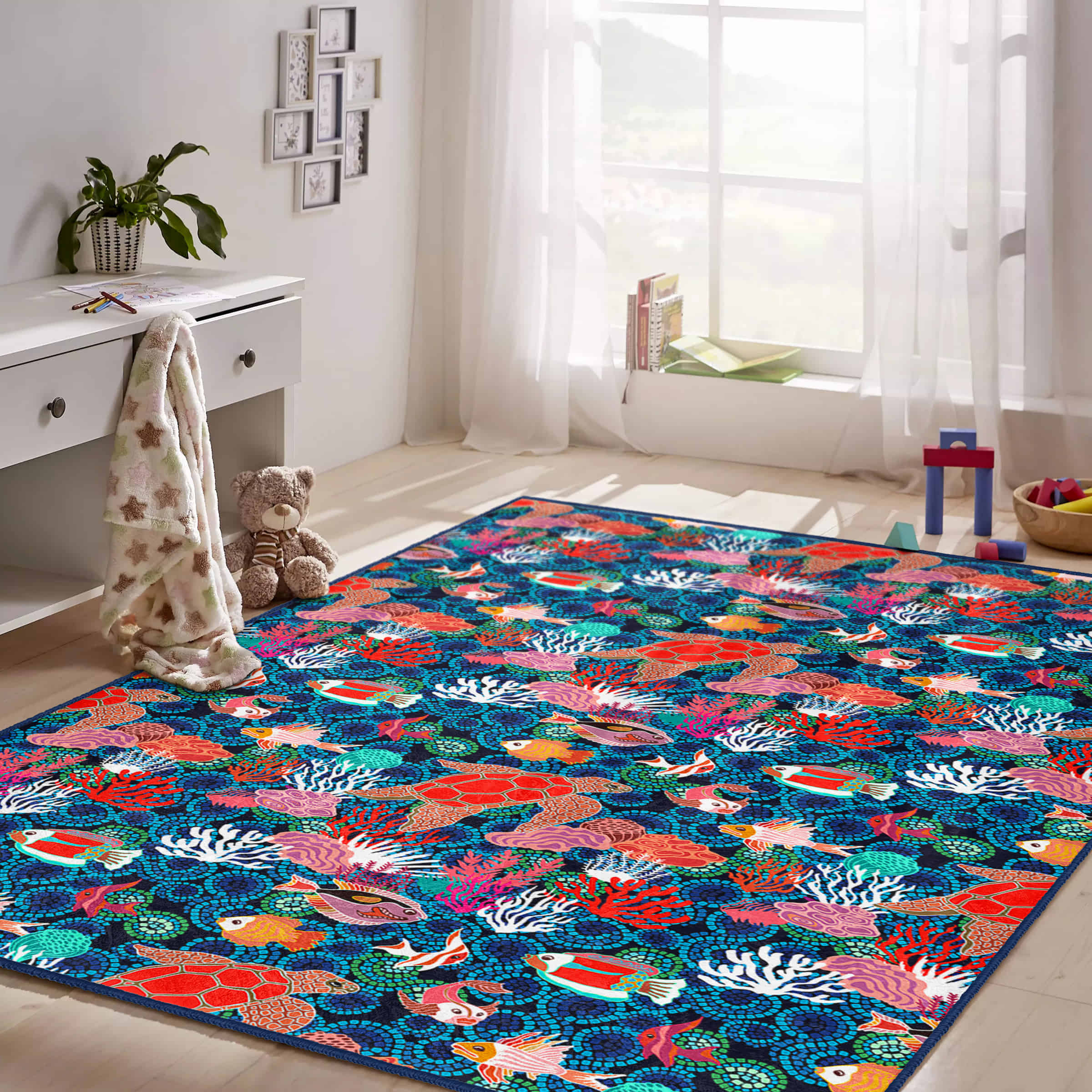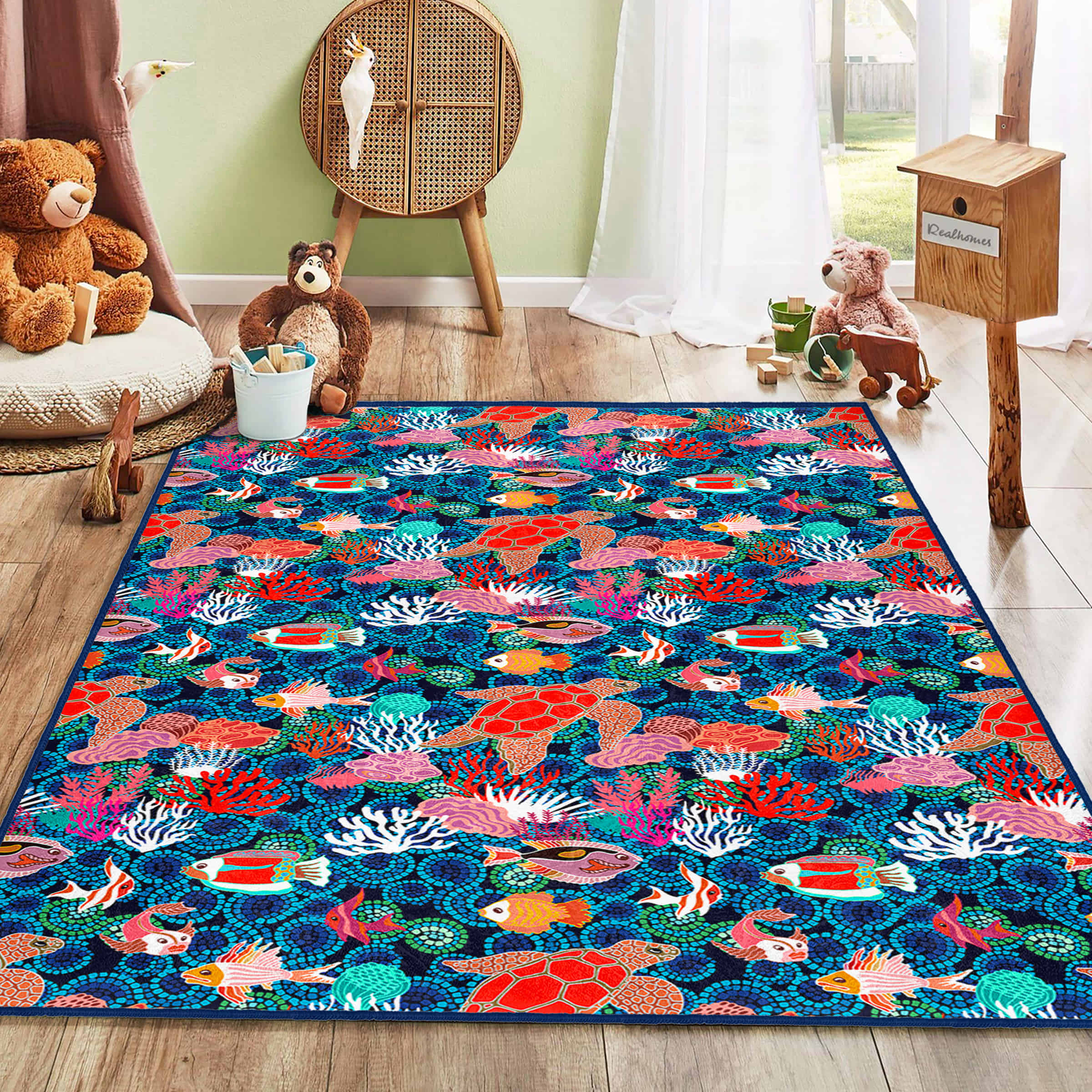 Canlı Renkli Deniz Temalı Dikdörtgen Çocuk Halısı – Kaymaz Tabanlı Yıkanabilir Çocuk Halısı