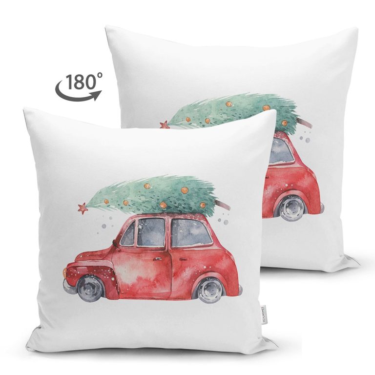 Christmas Temalı Araba Tasarımlı Dijital Baskılı Dekoratif Süet Yastık Kırlent Kılıfı