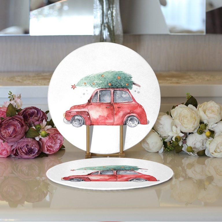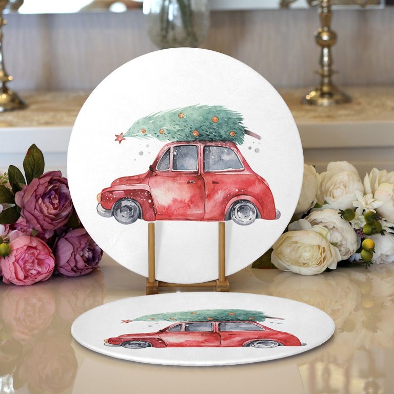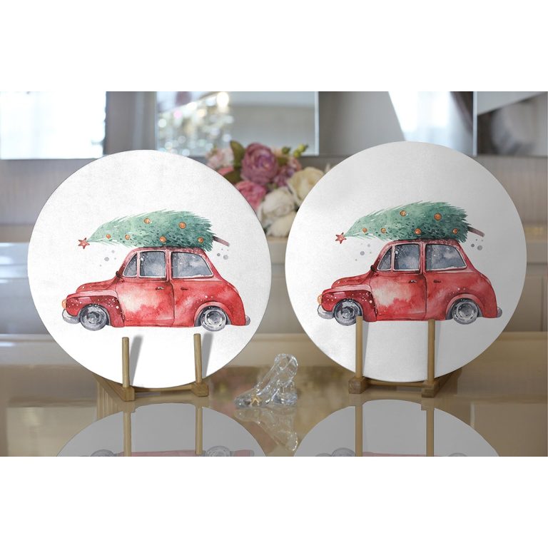 Christmas Temalı Araba Tasarımlı Dijital Baskılı Dekoratif Yuvarlak Servis Altlığı – Supla