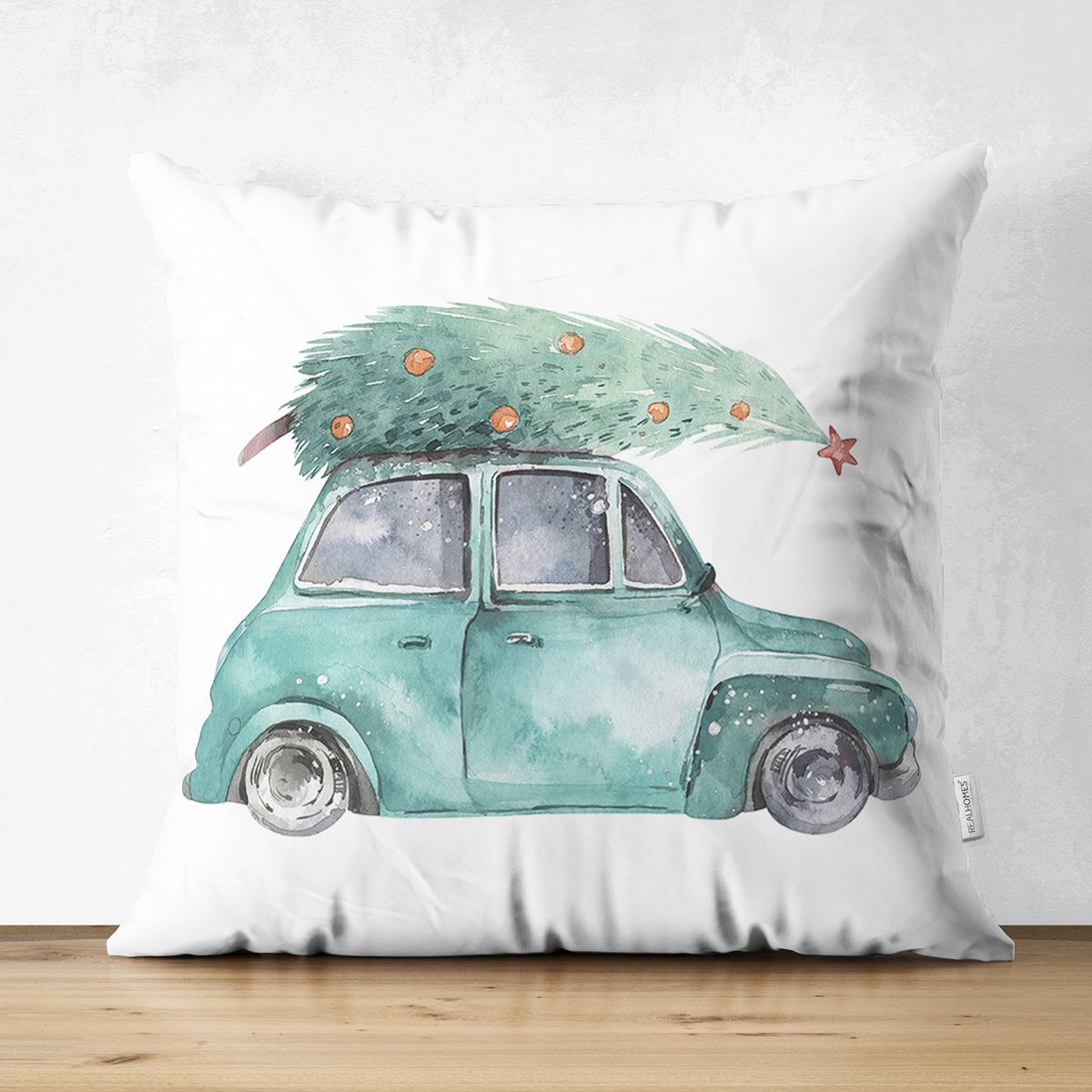 Christmas Temalı Araba Tasarımlı Dijital Baskılı Modern Süet Yastık Kırlent Kılıfı