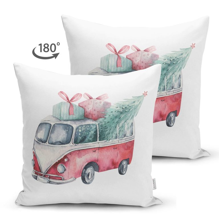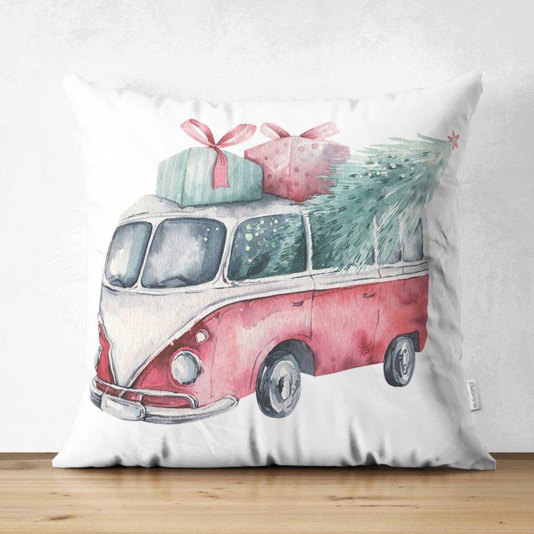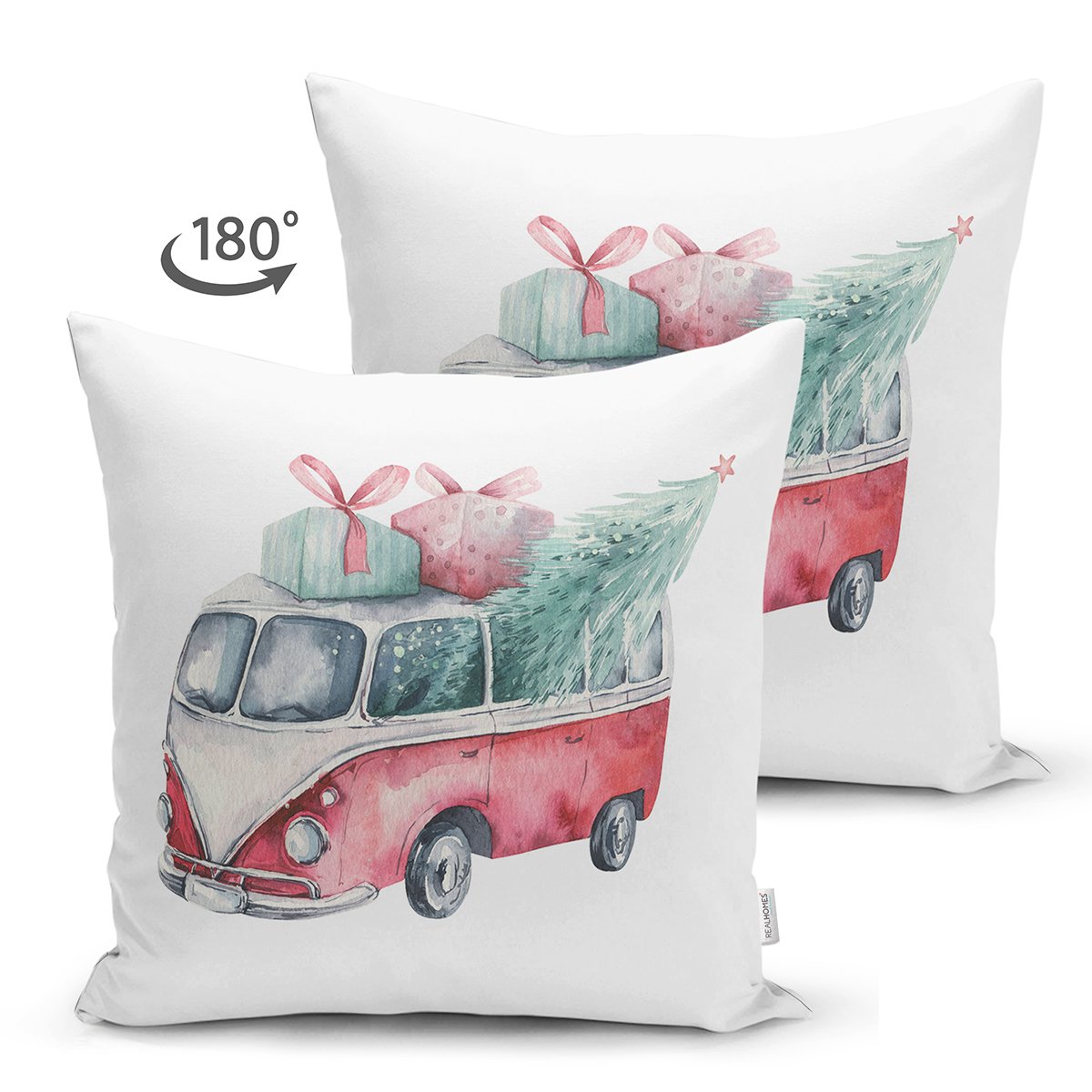 Christmas Temalı Araba Tasarımlı Dijital Baskılı Modern Süet Yastık Kırlent Kılıfı