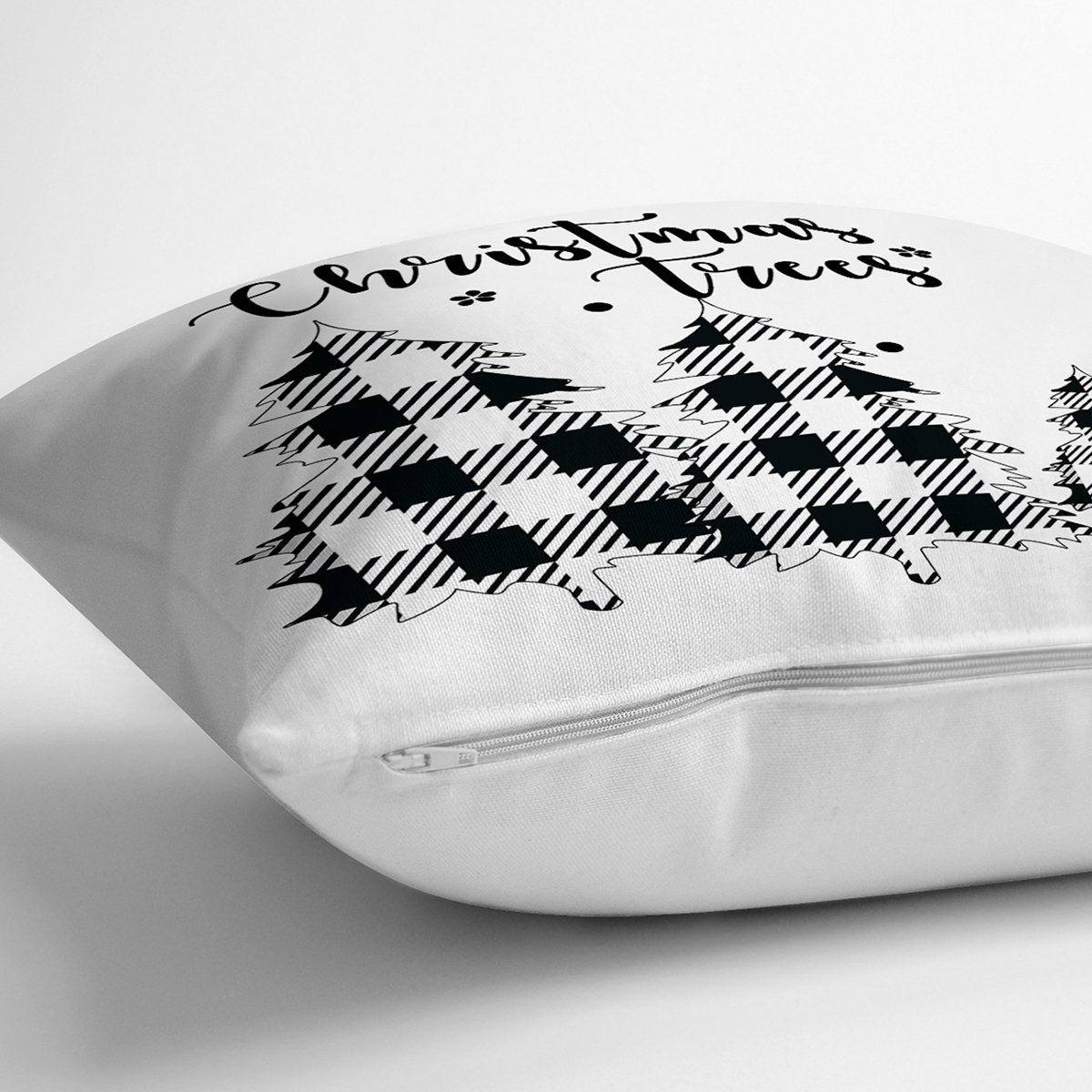 Christmas Temalı Ekose Çam Ağacı Motifli Yastık Kırlent Kılıfı