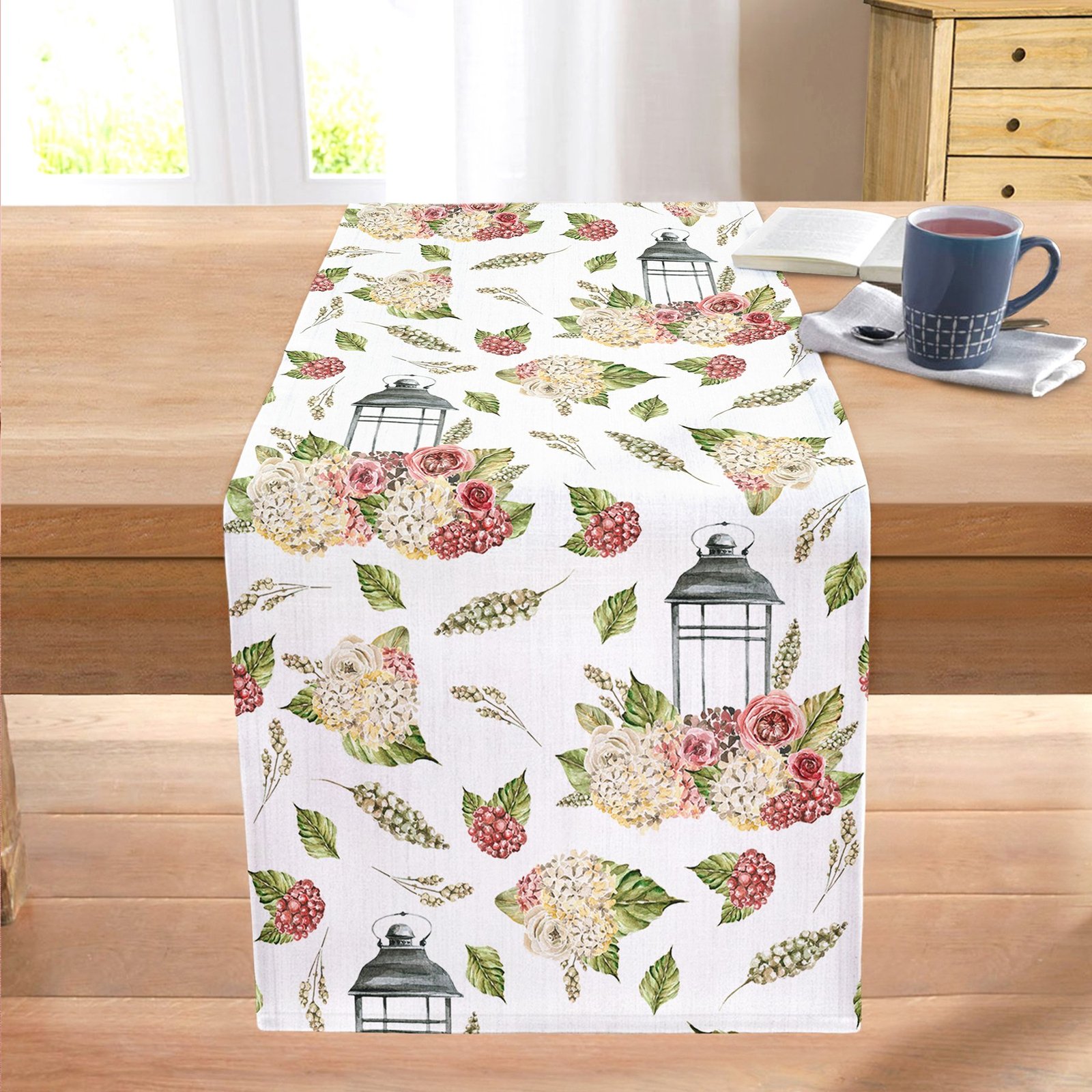 Çiçek Çizimli Dijital Baskılı Dekoratif Dikişli Şönil Runner