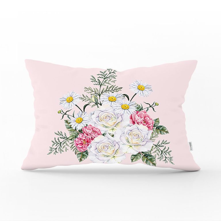 Çiçek Desenli Dijital Baskılı Dekoratif Dikdörtgen Yastık Kırlent Kılıfı