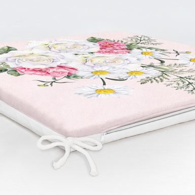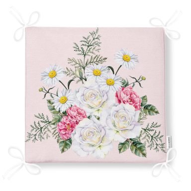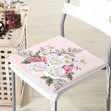 Çiçek Desenli Dijital Baskılı Fermuarlı Sandalye Minderi