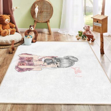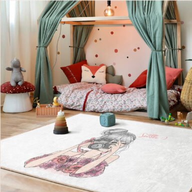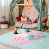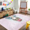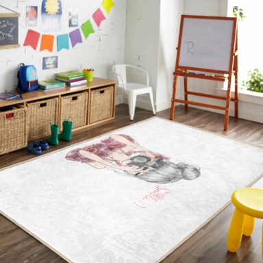 Çiçek Desenli Eğlenceli Çocuk Halısı – Yıkanabilir Kaymaz Tabanlı Dikdörtgen Halı