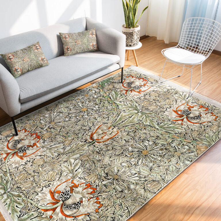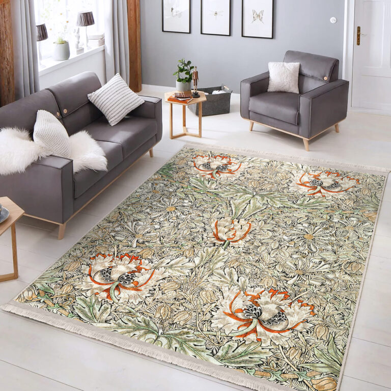 Çiçek Desenli Renkli Salon Halısı – Yıkanabilir Kaymaz Tabanlı Dikdörtgen Halı