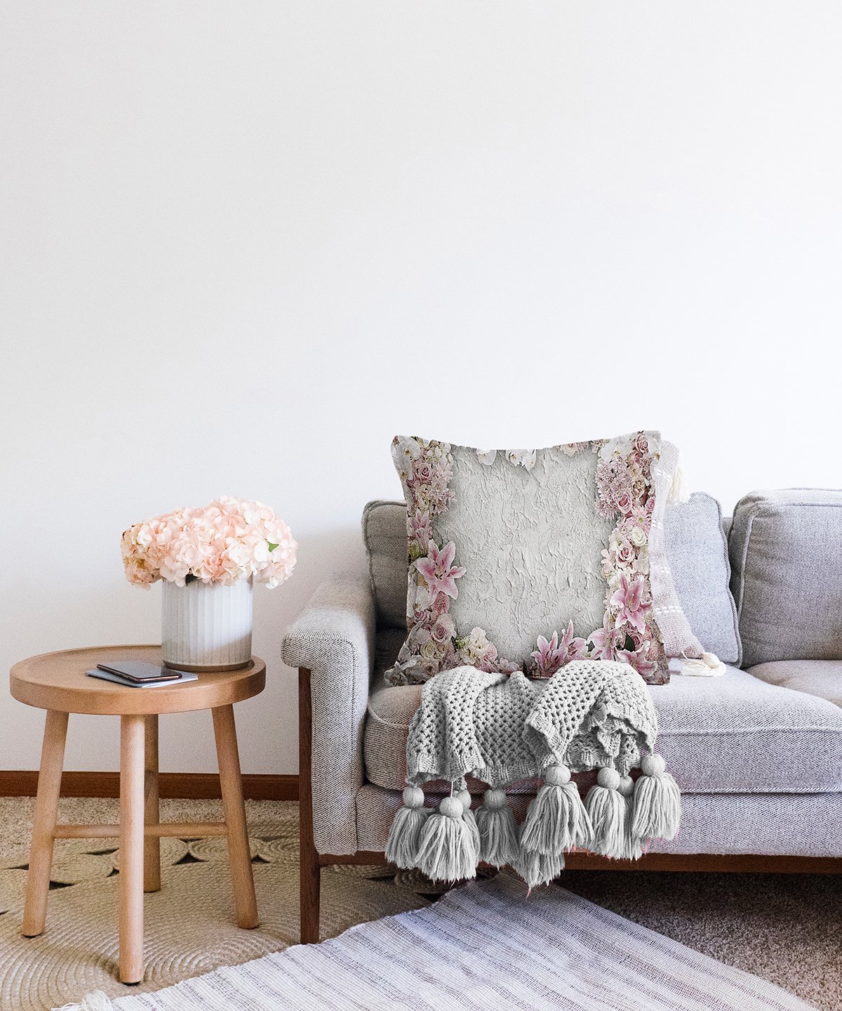 Çiçek Dünyası Dijital Baskılı Dekoratif Raşel Yastık Kırlent Kılıfı