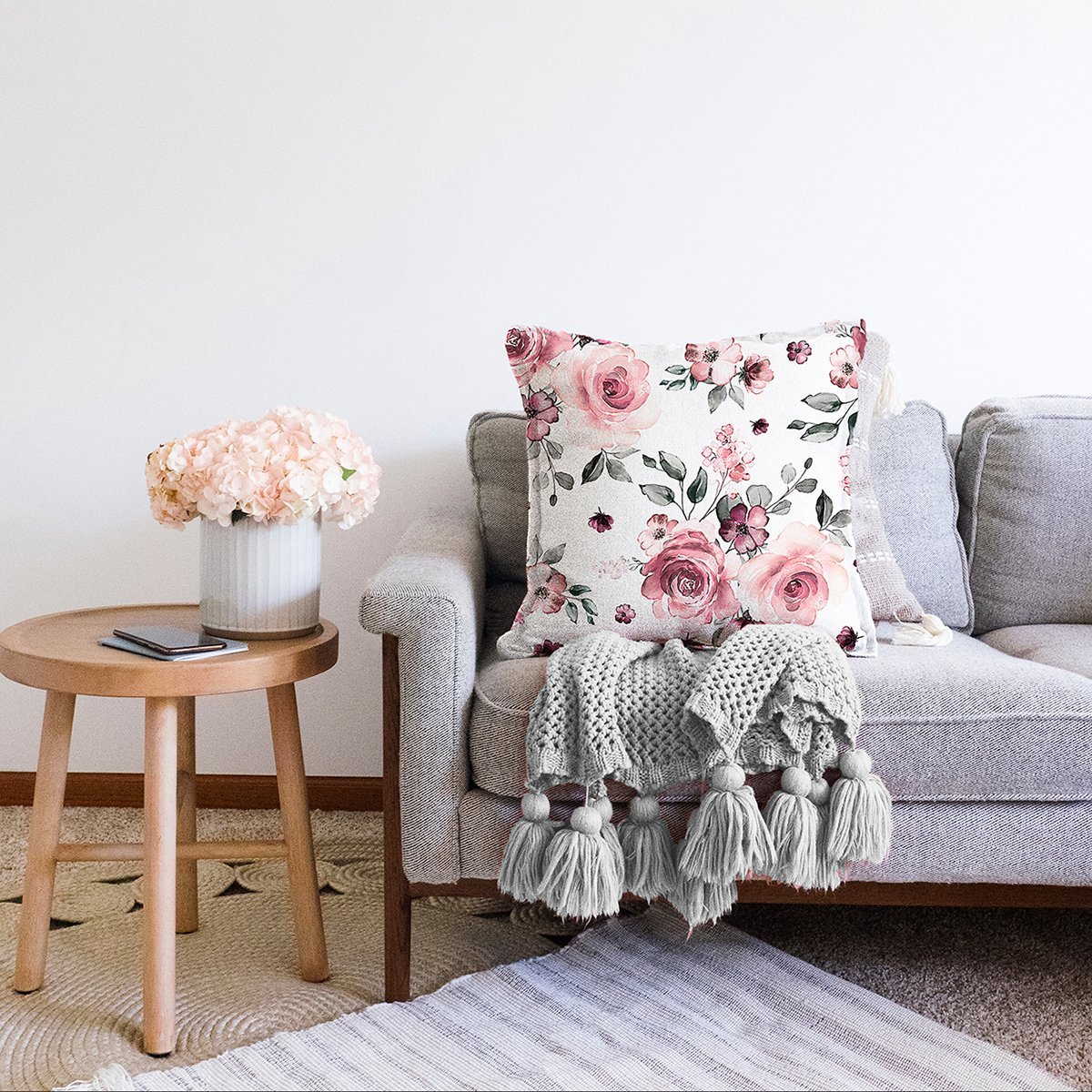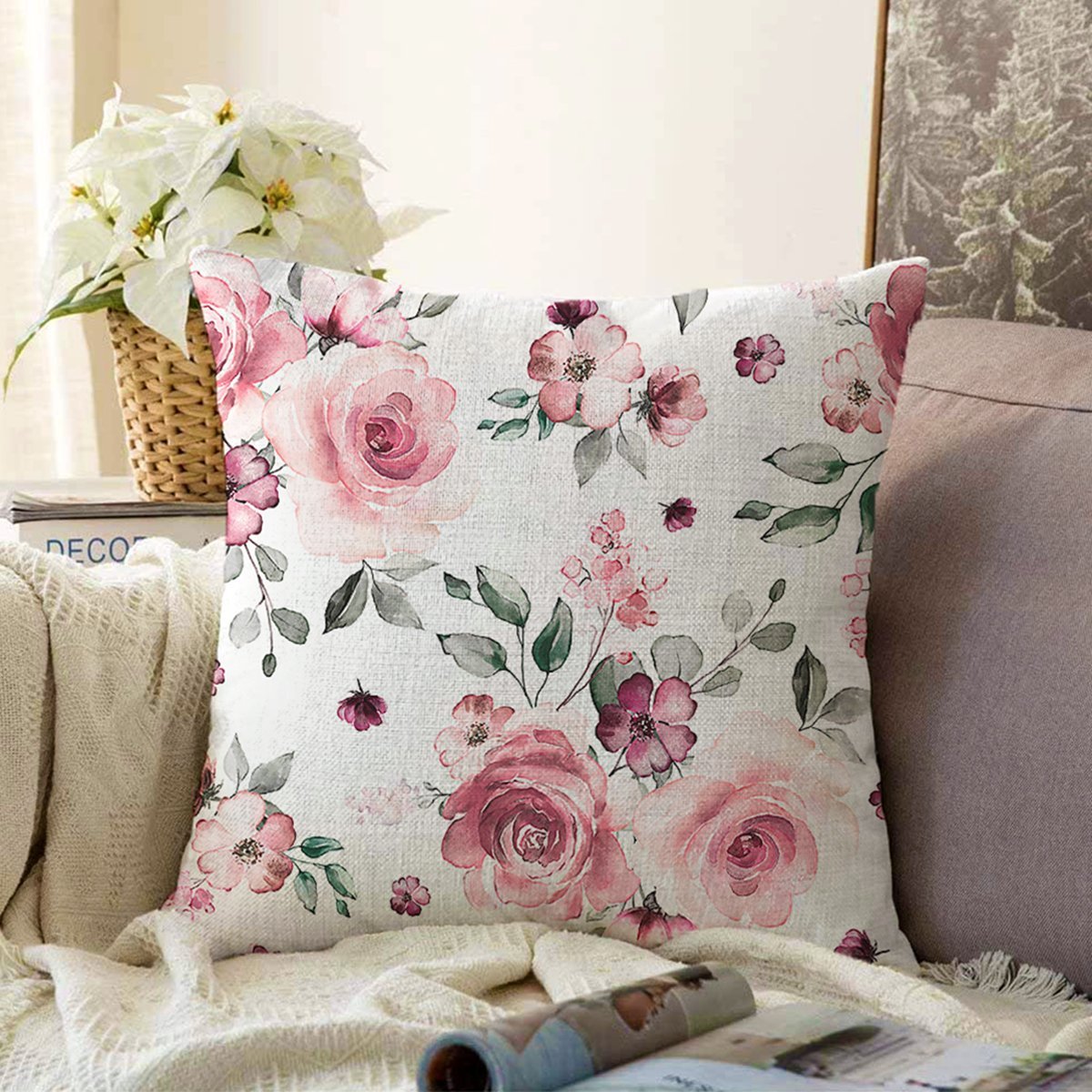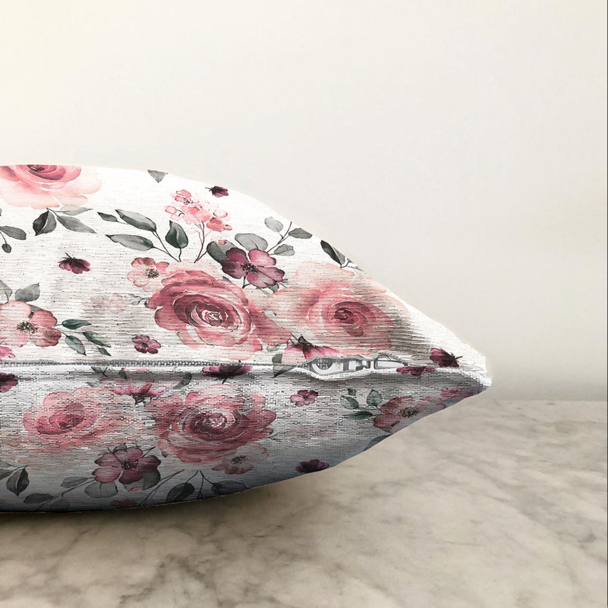 Beyaz Zemin Üzerinde Renkli Çiçek Desenli Raşel Yastık Kırlent Kılıfı