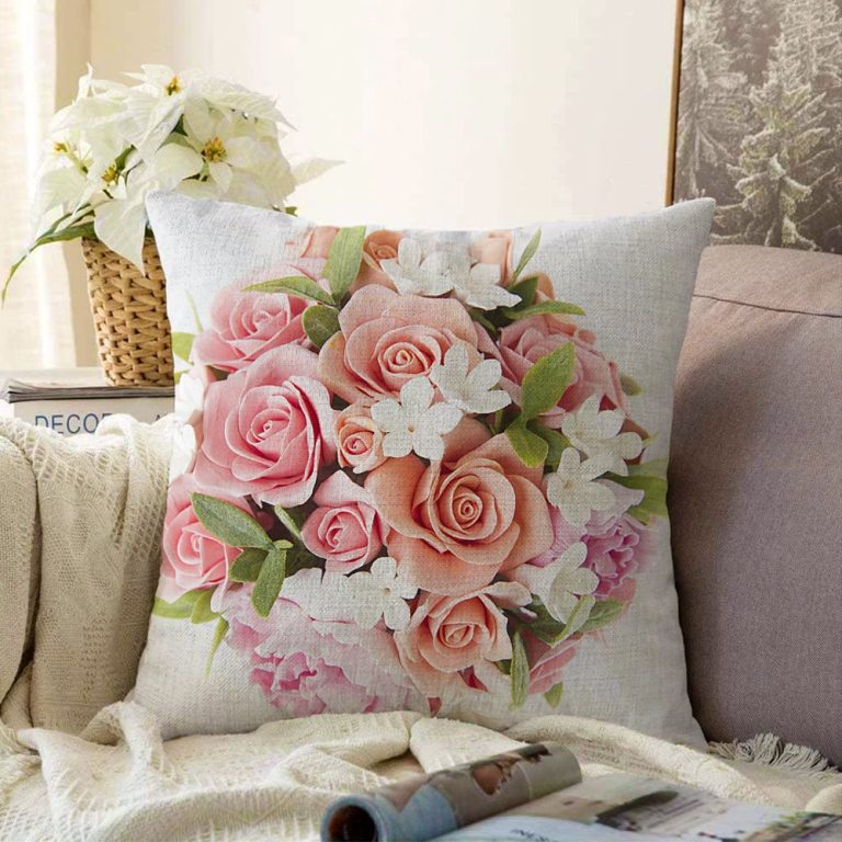 Çiçek Desenli Dijital Baskılı Dekoratif Raşel Yastık Kırlent Kılıfı