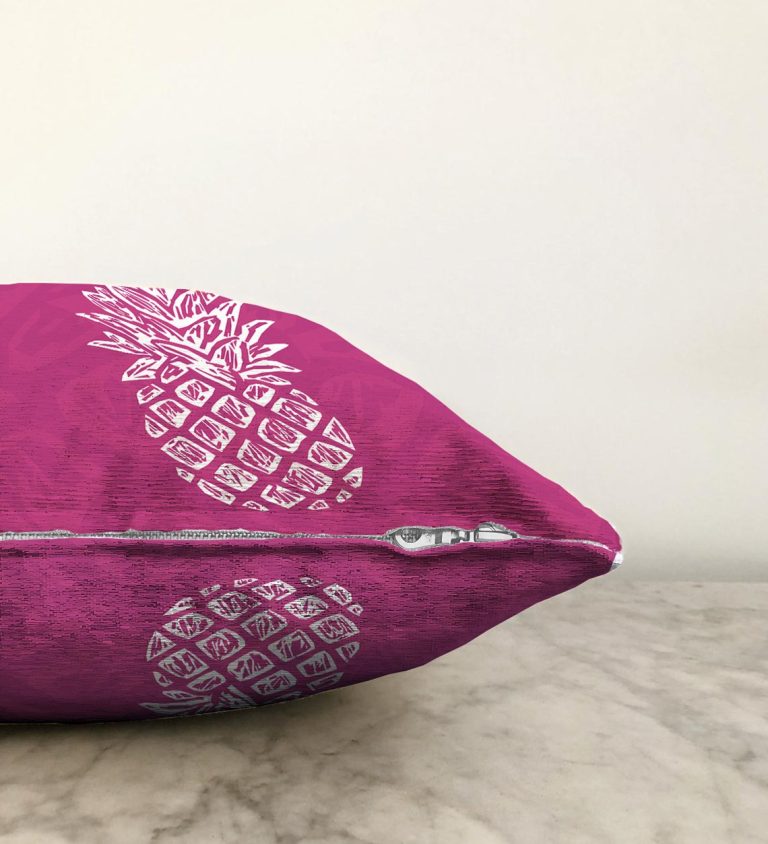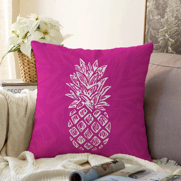 Fuşya Zeminde Ananas Desenli Modern Tasarım Raşel Yastık Kırlent Kılıfı