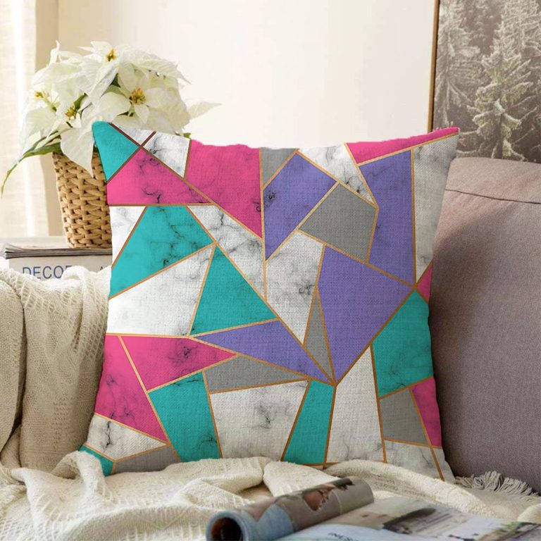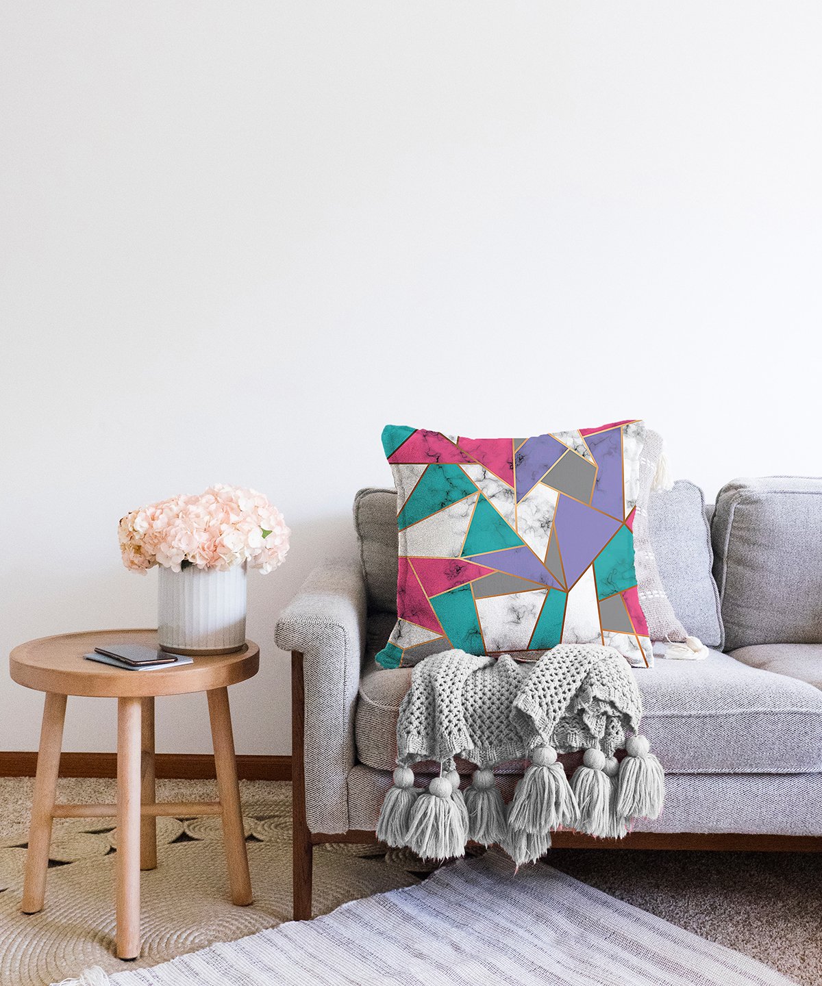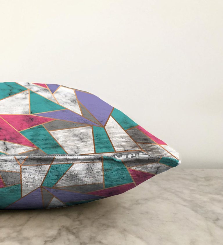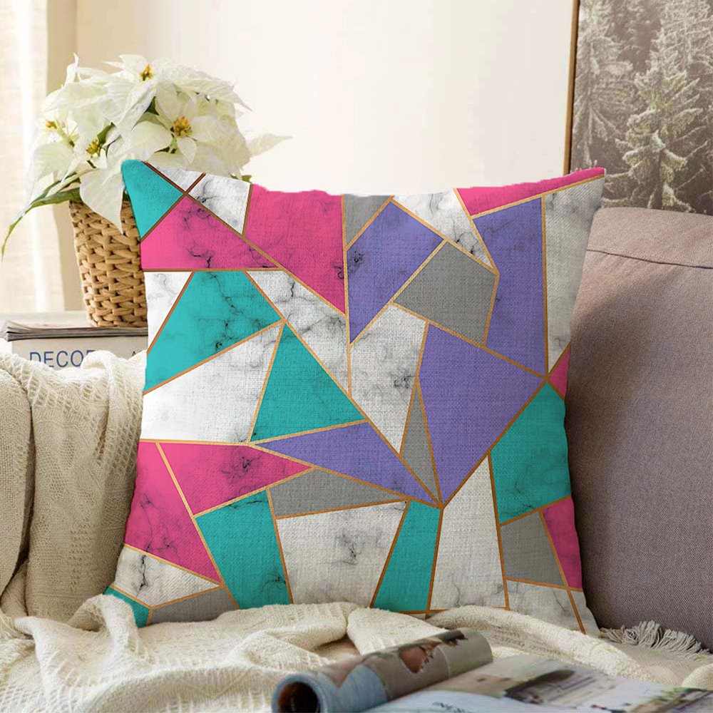 Geometrik Şekilli Mermer Dijital Baskılı Modern Raşel Yastık Kırlent Kılıfı