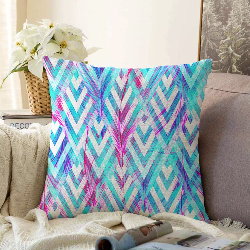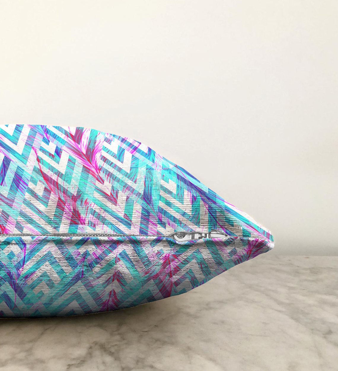 Geometrik Zeminde Tüy Desenli Modern Raşel Yastık Kırlent Kılıfı