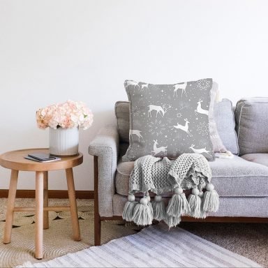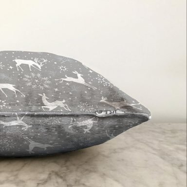 Gri Zemin Üzerinde Geyik Desenli Dijital Baskılı Modern Raşel Yastık Kırlent Kılıfı