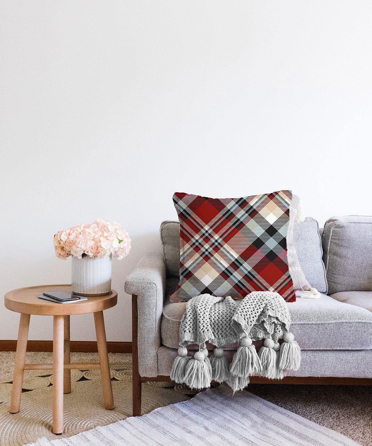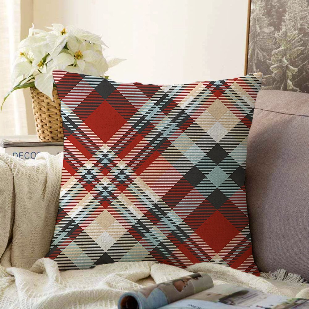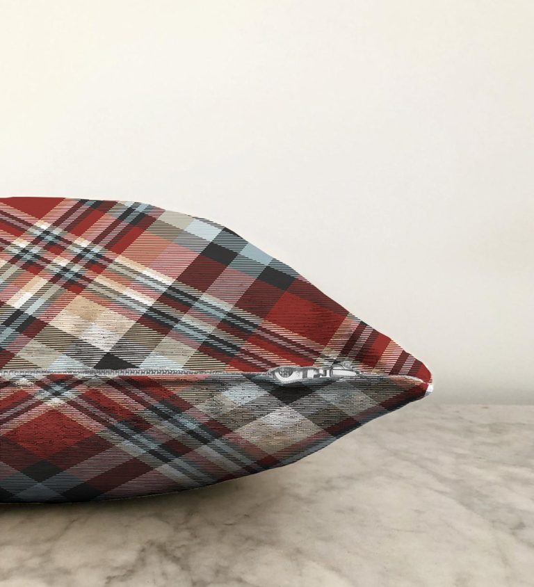 Kırmızı Siyah Beyaz Ekose Desenli Dekoratif Raşel Yastık Kırlent Kılıfı