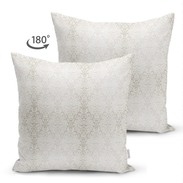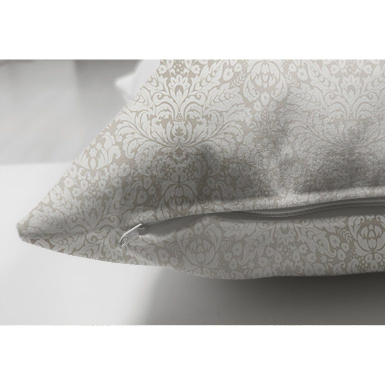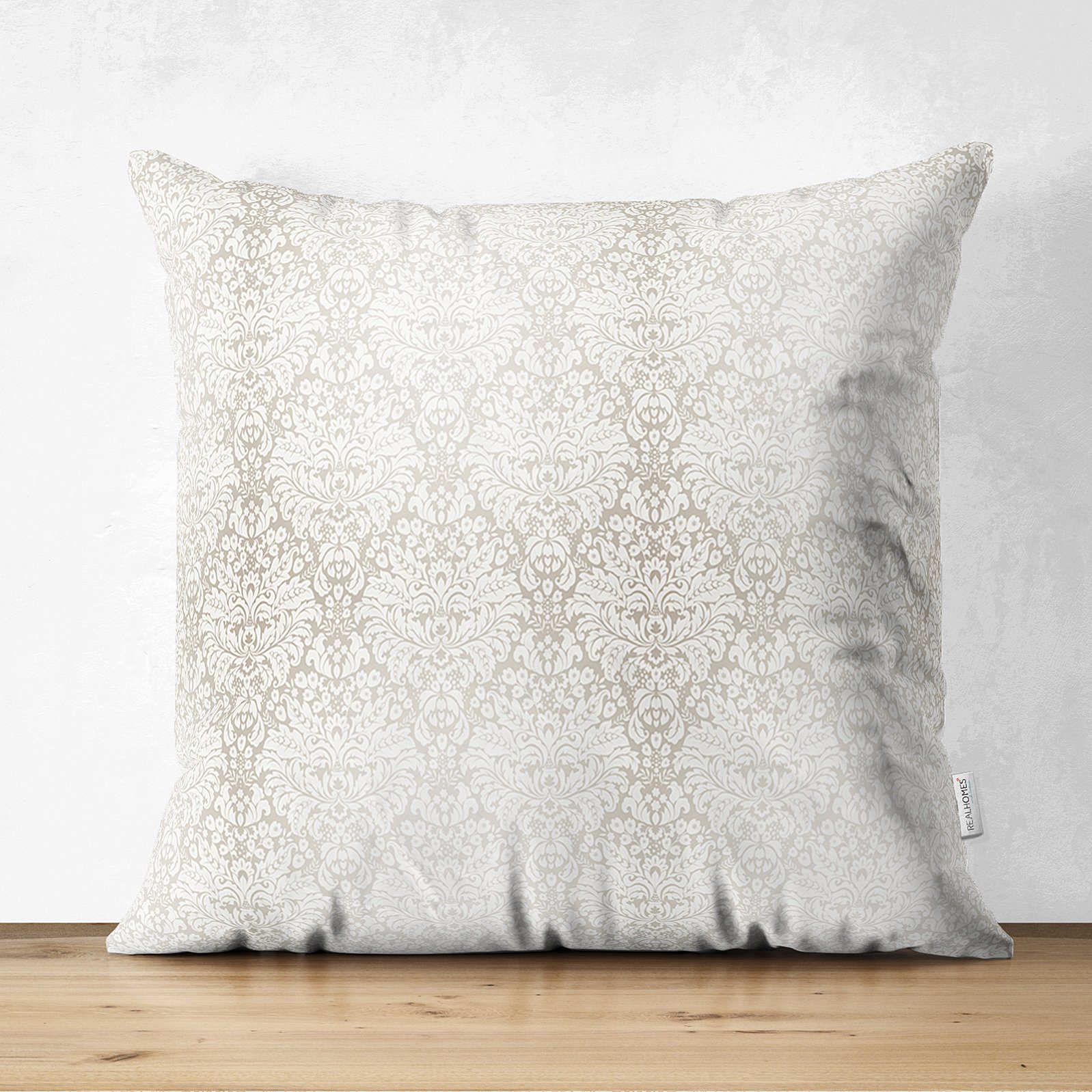 Krem Renkli Damask Motifleri Tasarımlı Süet Yastık Kırlent Kılıfı
