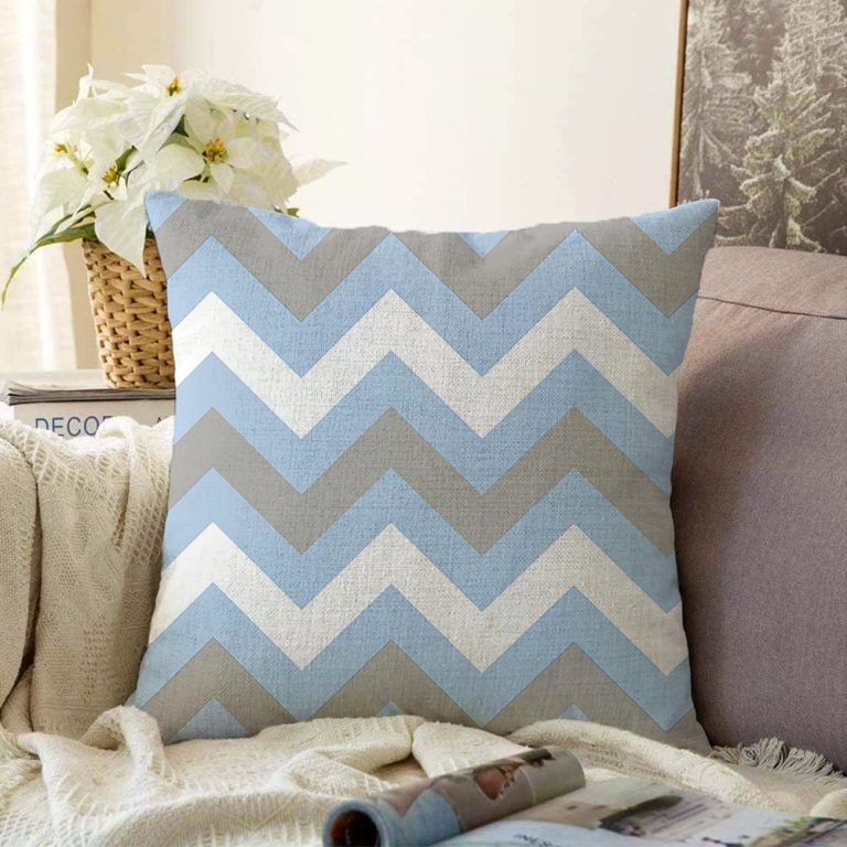 Mavi Gri Zigzag Desenli Dijital Baskılı Dekoratif Raşel Yastık Kılıfı