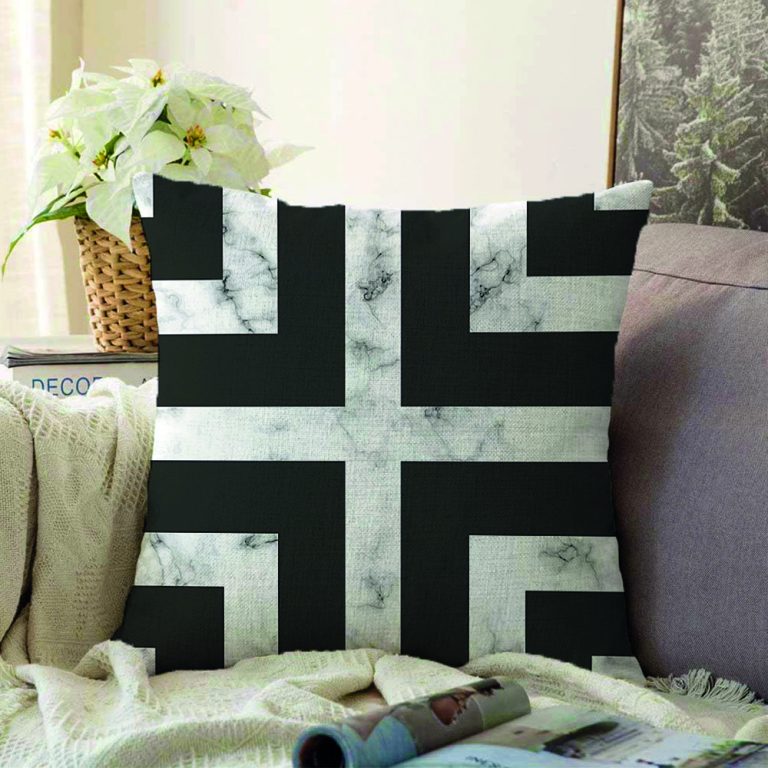 Mermer Zeminli Siyah Geometrik Desenli Modern Raşel Yastık Kırlent Kılıfı