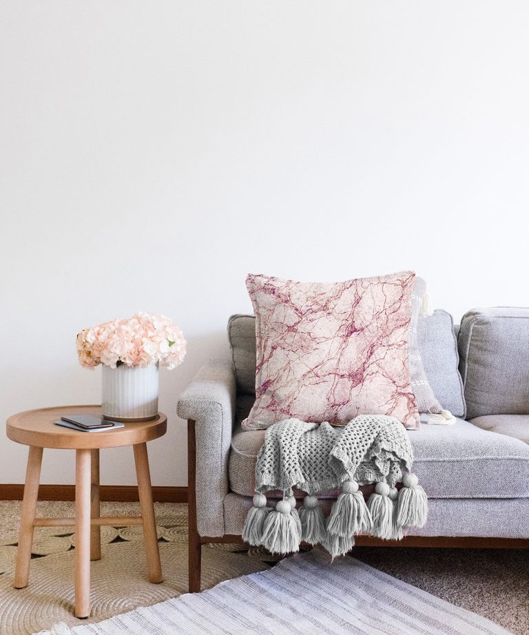 Modern Mermer Görünümlü Dijital Baskılı Raşel Yastık Kırlent Kılıfı